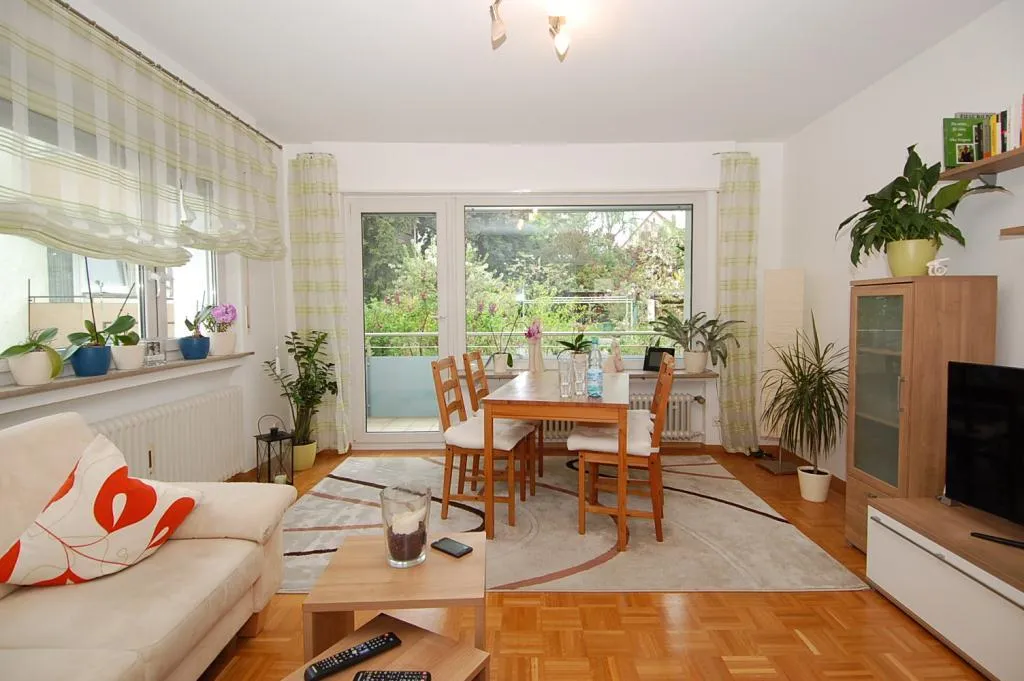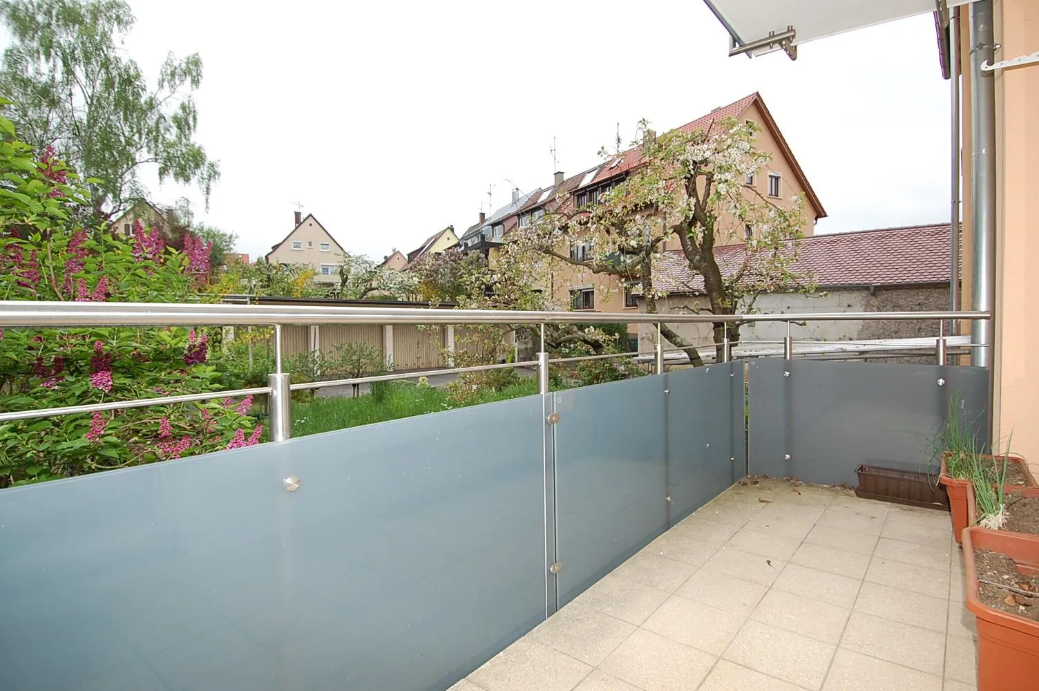 Der überdachte Süd-West Balkon ist ca. 6 m² groß und vom Wohnzimmer begehbar.