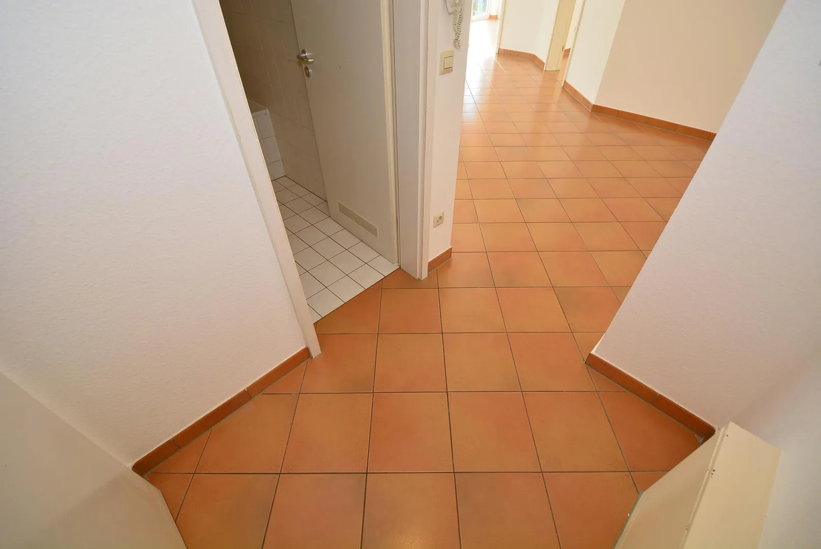 Die Böden in der Küche und im Badezimmer sind weiß gefliest. Die Böden im Flur, im Wohnzimmer, im Schlafzimmer und im Kinderzimmer sind mit Terrakotta-Fliesen ausgestattet.