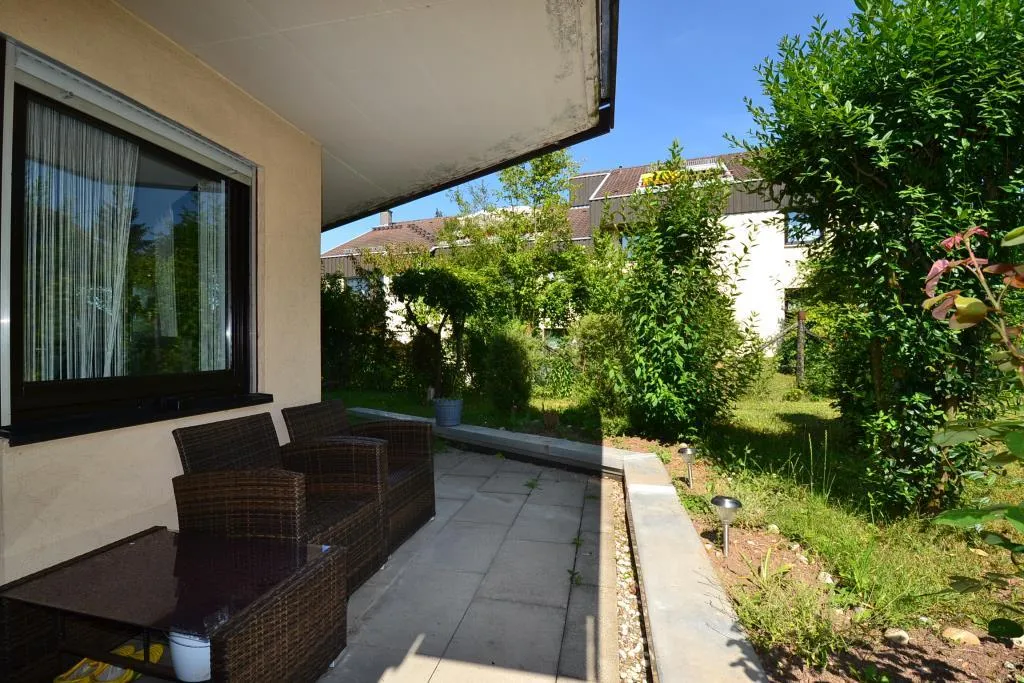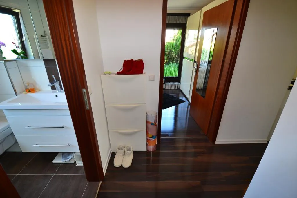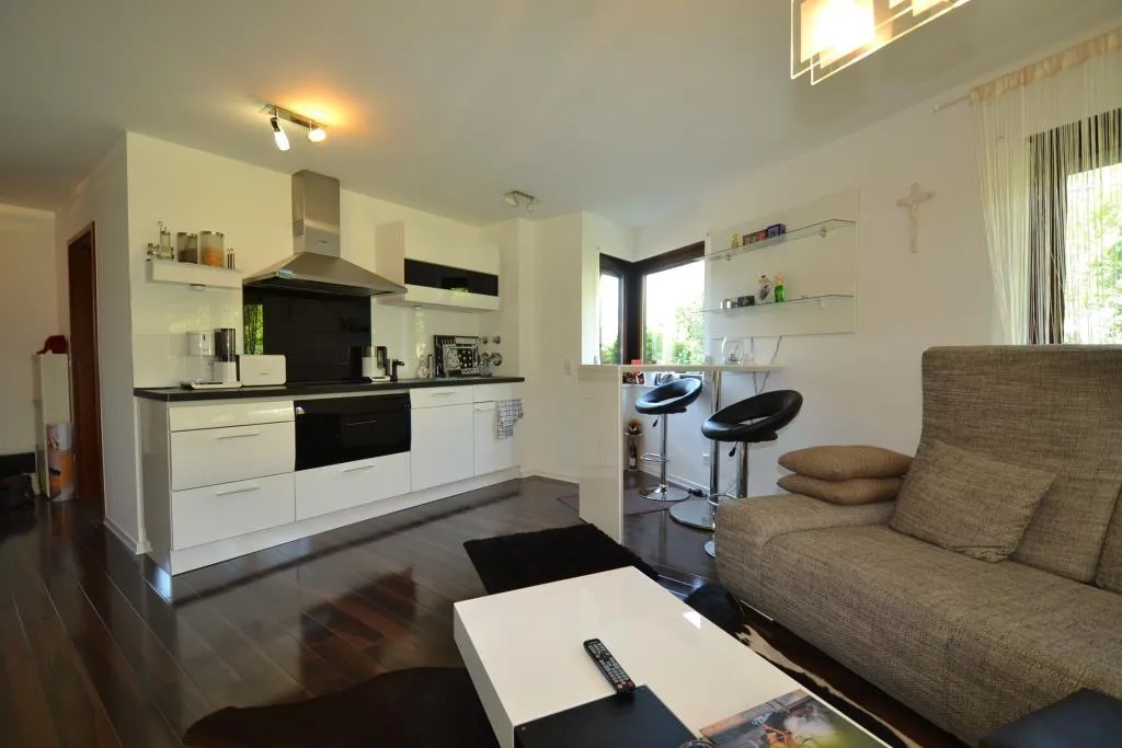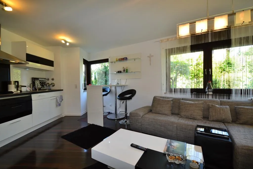 Diese gehobene, schicke und moderne 2-Zimmer-Wohnung mit zwei Terrassen und Garten befindet sich im Hochparterre (Erdgeschoss) eines geplegten 6-Familienhauses.