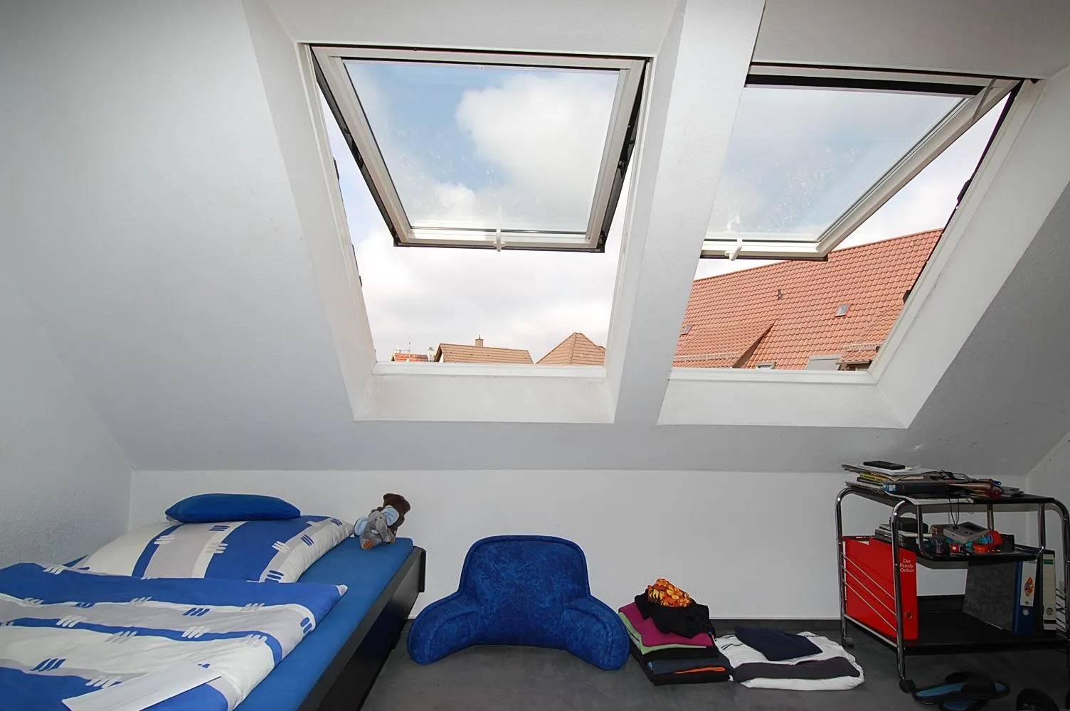 Diese schöne Dachgeschoss-Wohnung befindet sich im freistehenden 5-Familien-Haus. Das Haus wurde 1995, massiv, 2-geschossig, mit Satteldach, komplett unterkellert und mit Tiefgarage gebaut.