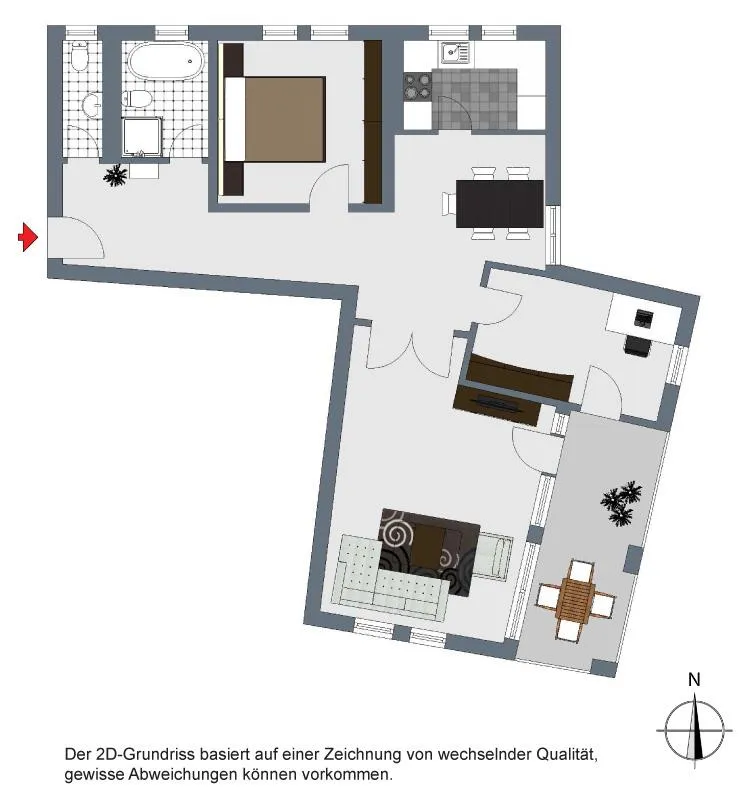 Der Grundriss der Wohnung ist sehr gut und außergewöhnlich. Alle Räume sind vom Flur aus begehbar.