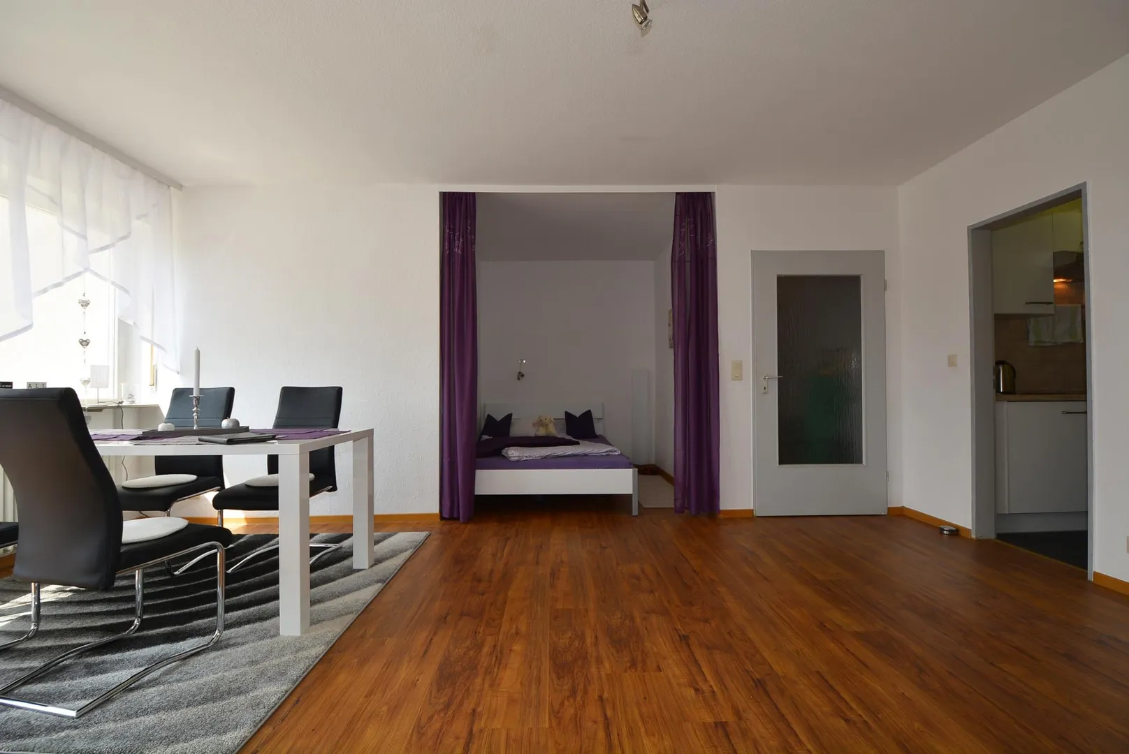 Die Böden im Flur und im Wohn-/Schlafzimmer wurden 2014 mit Laminat ausgestattet.
