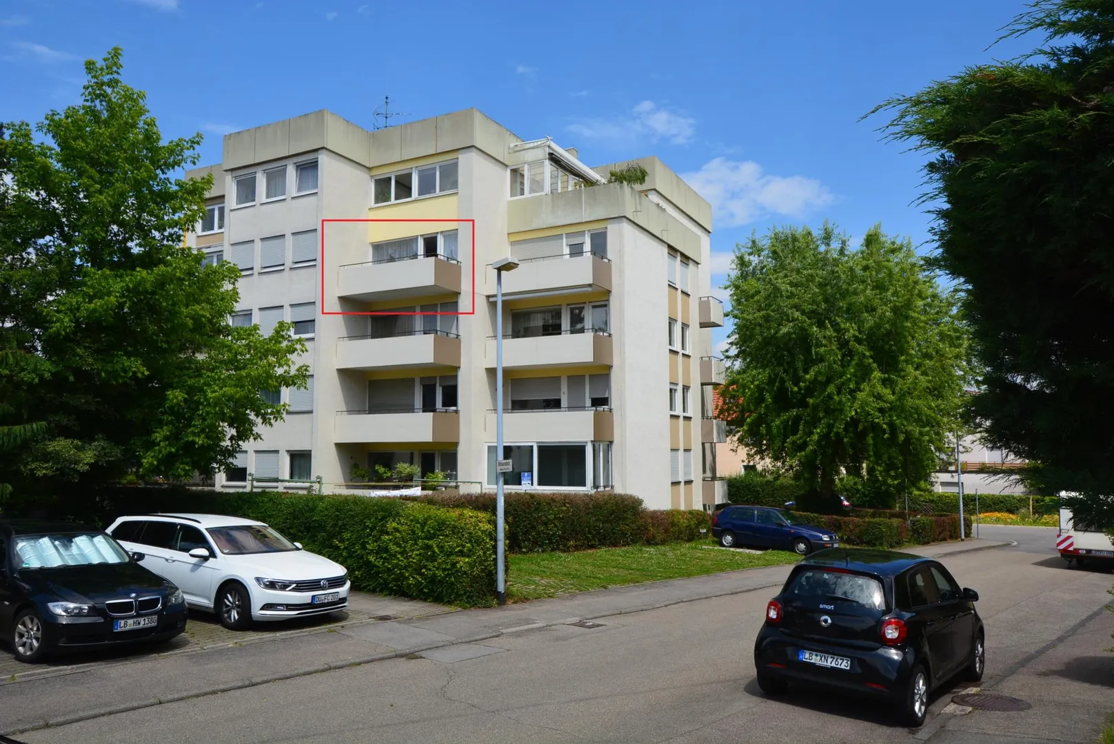Das Wohnzimmer und der ca. 7 m² große West-Balkon sind nach Westen ausgerichtet.
