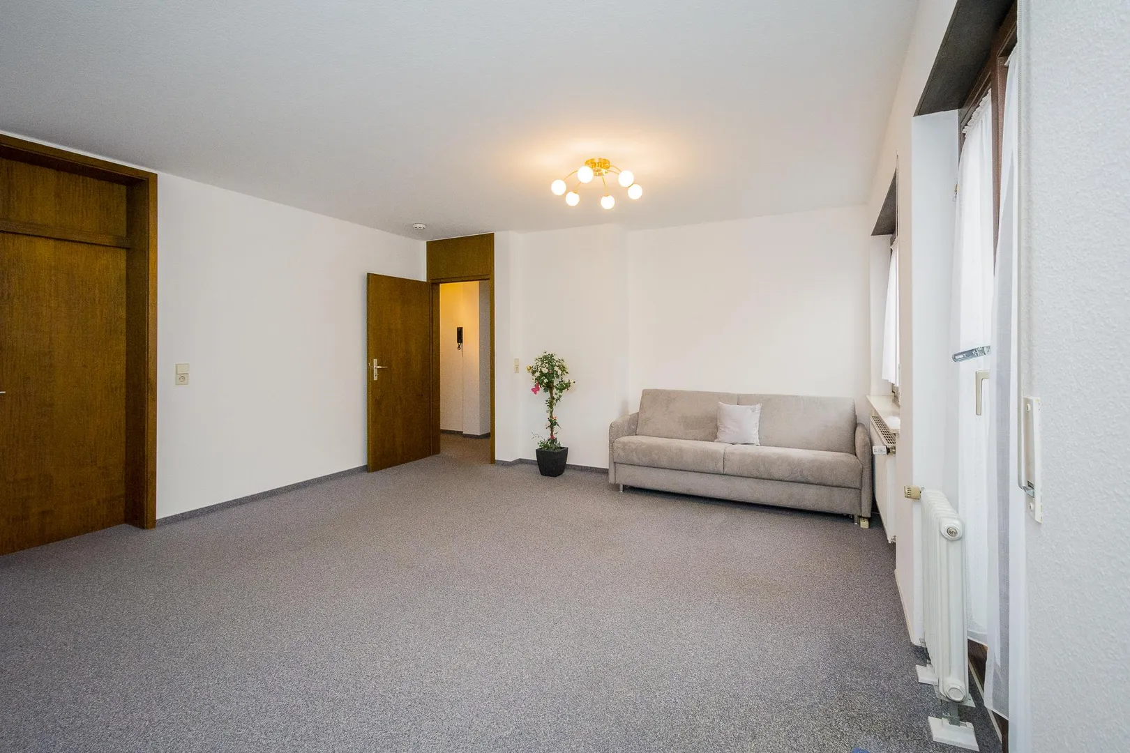 Die Wände sind mit Raufasertapeten tapeziert und befinden sich in einem gepflegten Zustand.