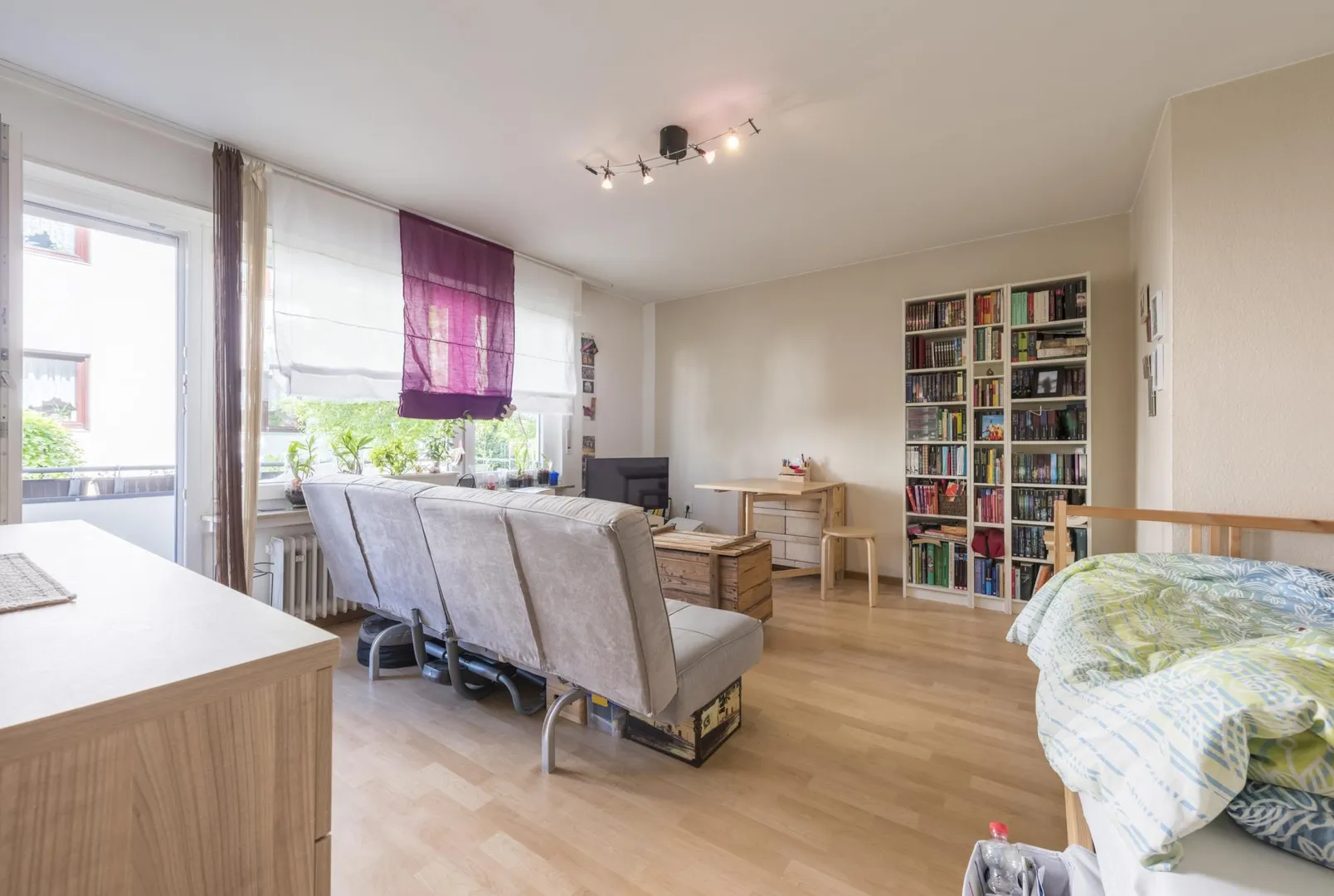 Diese gemütliche 1-Zimmer-Wohnung mit Balkon befindet sich im Hochparterre (Erdgeschoss).