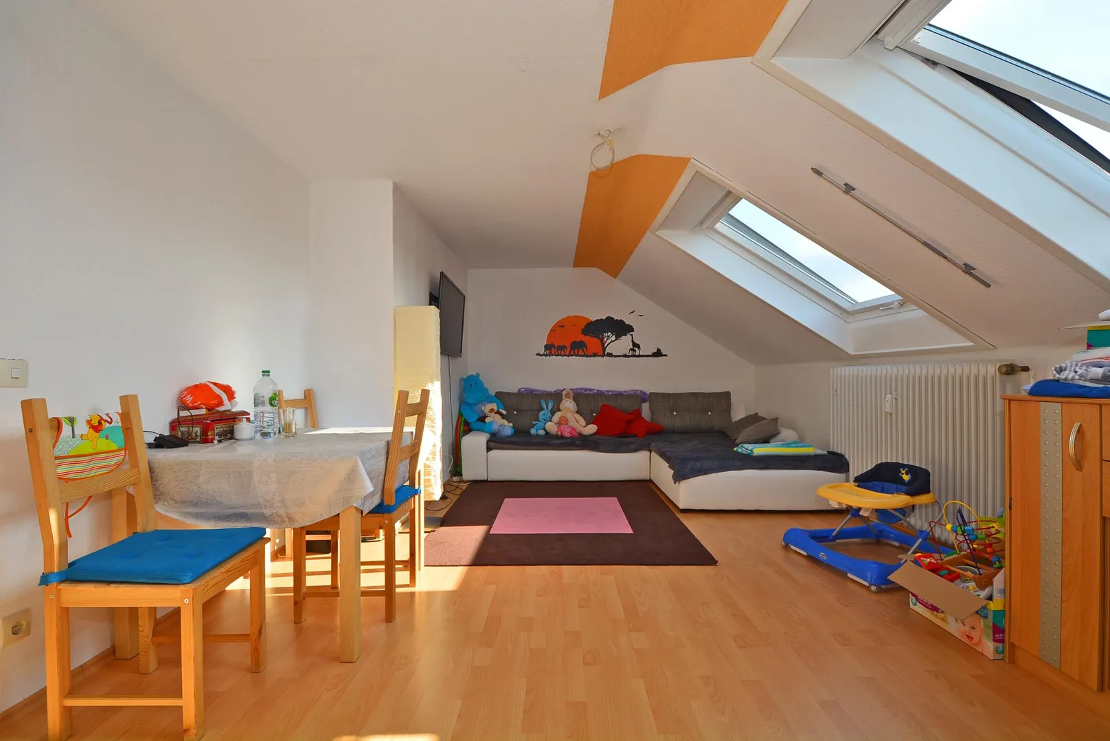 Diese gemütliche, helle und sonnige 2-Zimmer-Dachgeschoss-Wohnung befindet sich im 2. Obergeschoss.