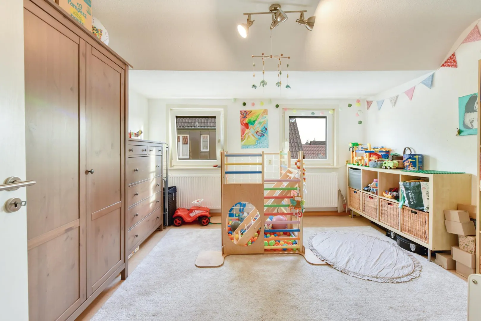 Diese modernisierte und frisch gestrichene 4-Zimmer-Dachgeschoss-Etagen-Wohnung ohne Balkon, aber mit Gartenanteil, befindet sich im 2. Obergeschoss eines 3-Familienhauses.