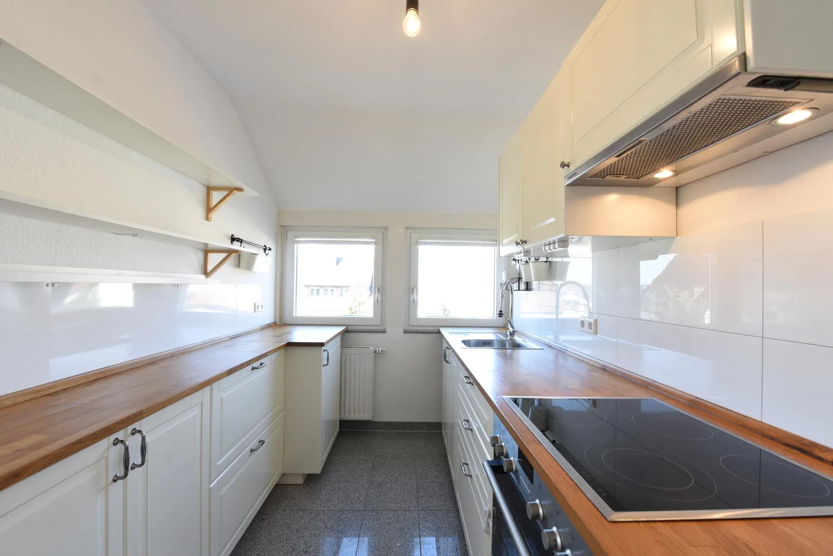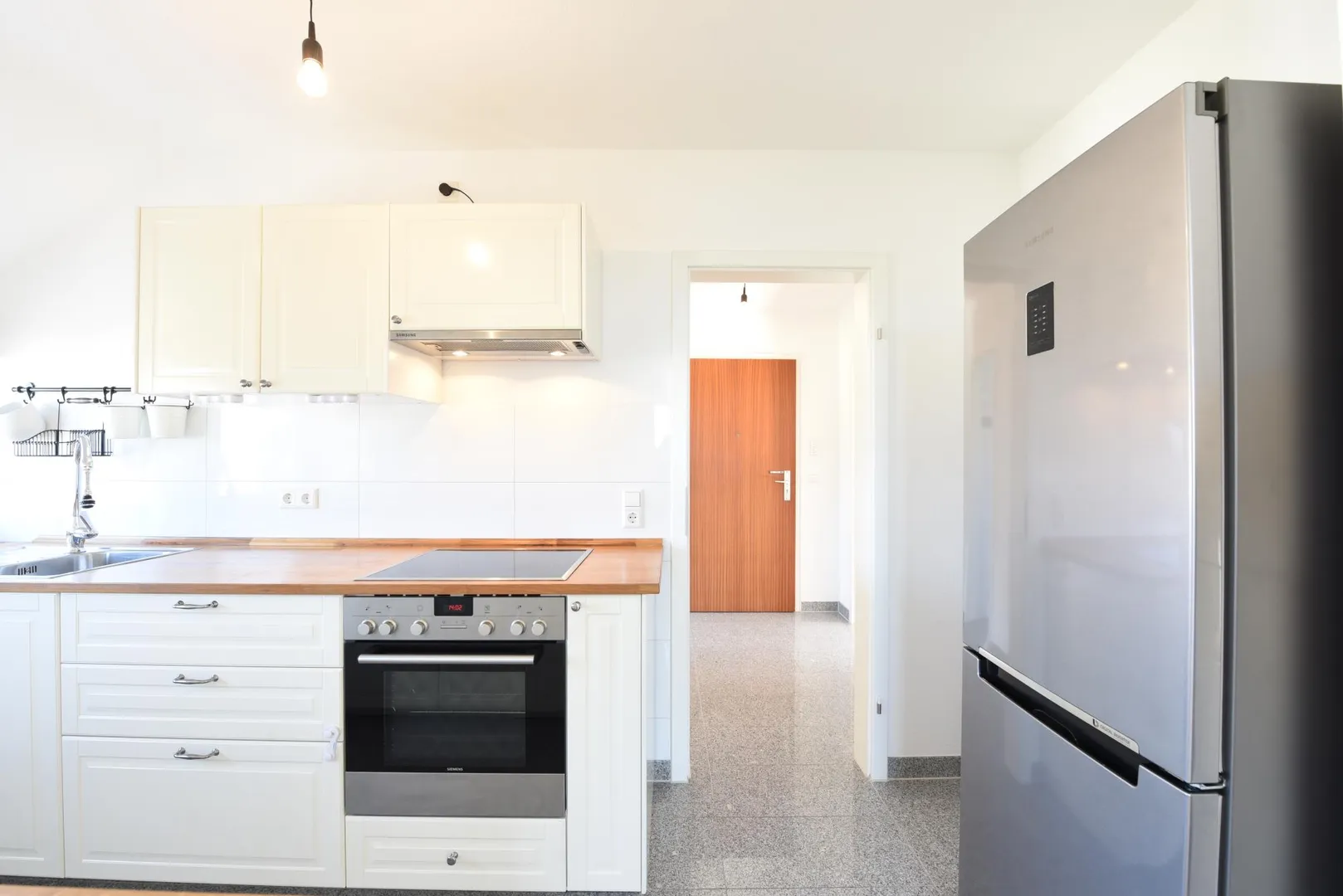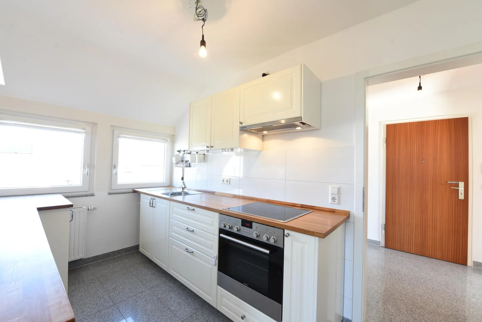 Die sehr gepflegte Einbauküche von 2015 kann vom aktuellen Mieter für 1.600 EUR übernommen werden. Sie ist ausgestattet mit Kühlschrank, Gefrierschrank, Herd mit Backofen, Dunstabzug sowie Ober- und Unterschränken. Eine Spülmaschine ist nicht vorhanden.
