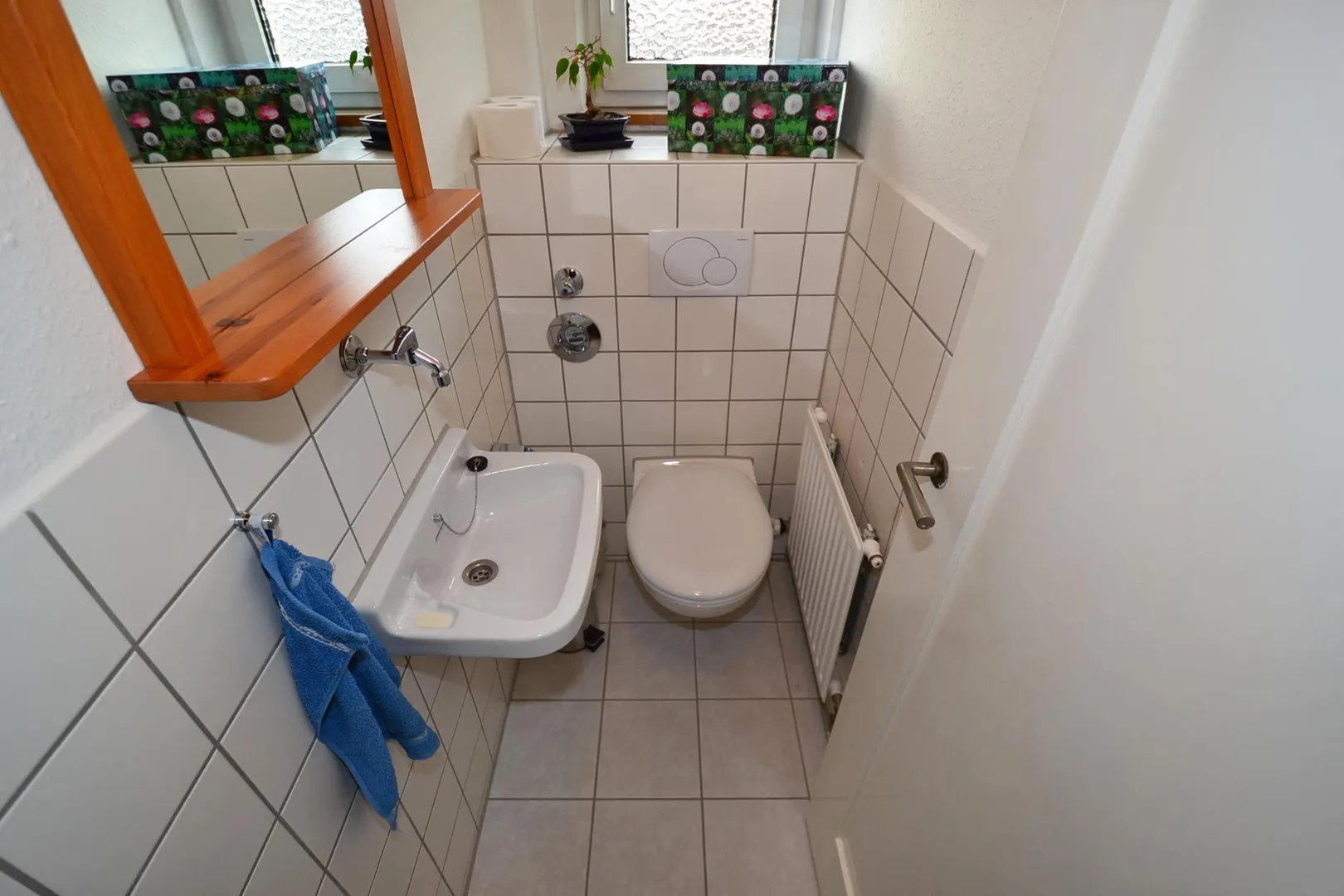 In der Wohnung befindet sich auch ein separates Gäste-WC, ebenfalls gefliest und mit Fenster.