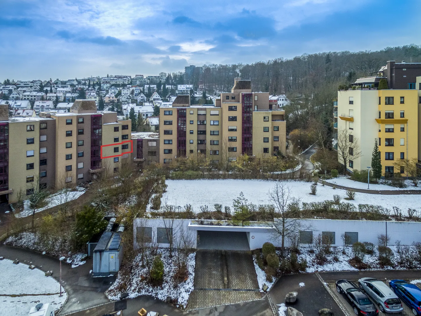 Zur Wohnung gehören eine Kfz-Box in der Tiefgarage sowie ein ca. 10 m² großer Abstellraum im Untergeschoss.