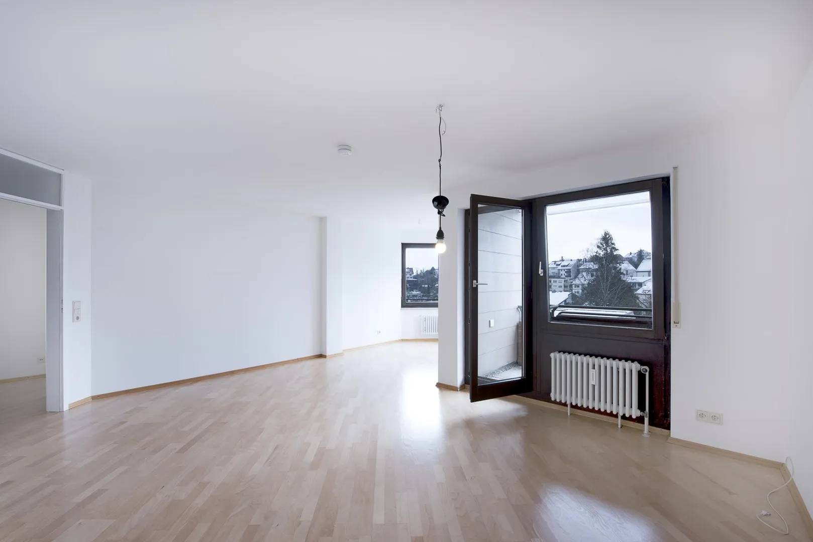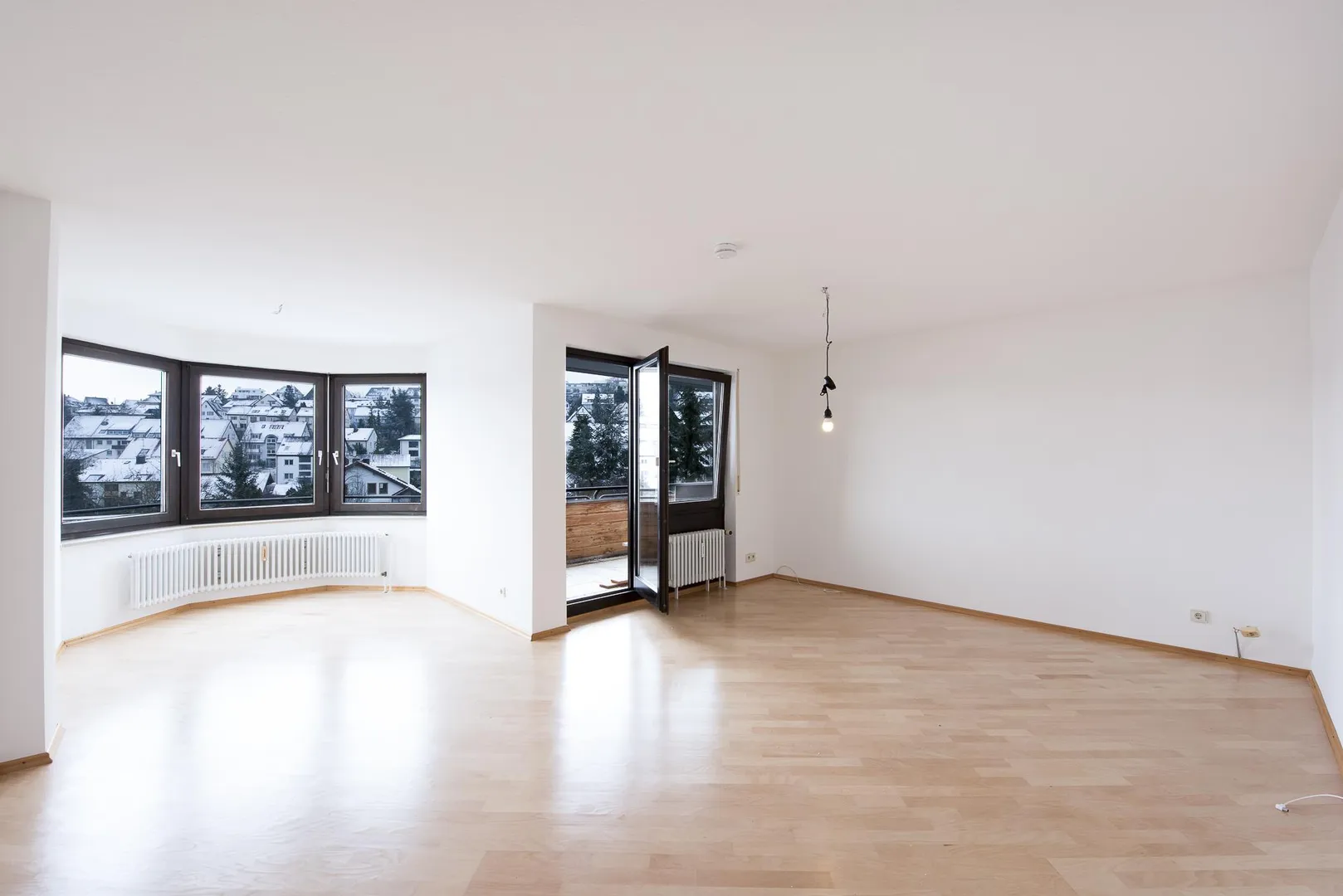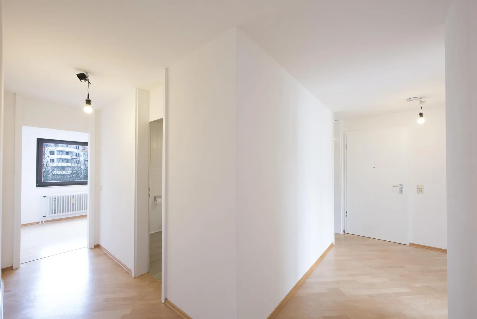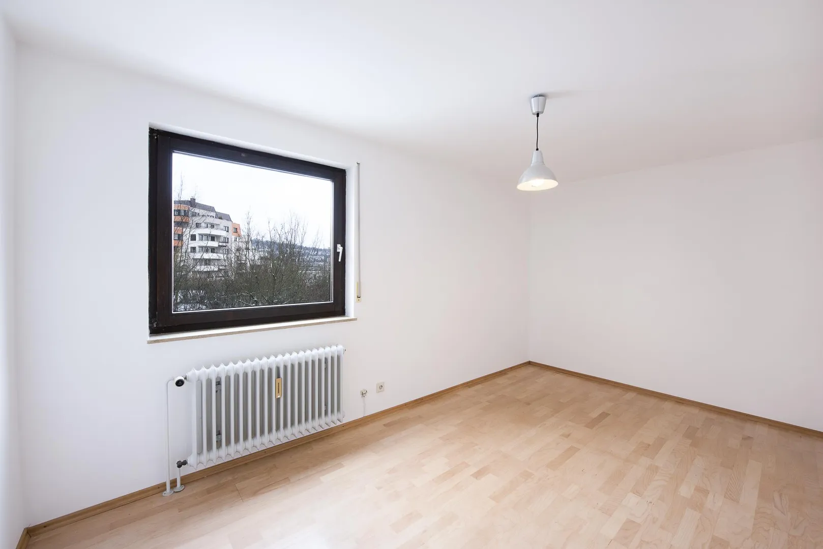 Der Grundriss ist gut. Alle Räume sind direkt vom Flur begehbar. Die Wohnung verfügt über zwei Bäder jeweils mit WC. Der ca. 9 m² große und überdachte Süd/Ost-Balkon ist vom Wohnzimmer begehbar. Das Wohnzimmer verfügt über einen Erker.