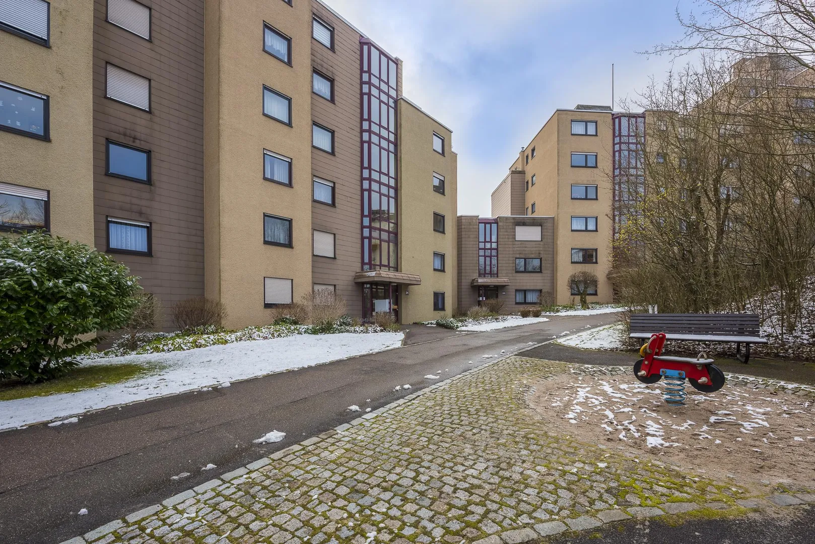 Diese gemütliche 4-Zimmer-Wohnung befindet sich im 2. Obergeschoss eines 12-Familien-Reihenmittelhauses.
