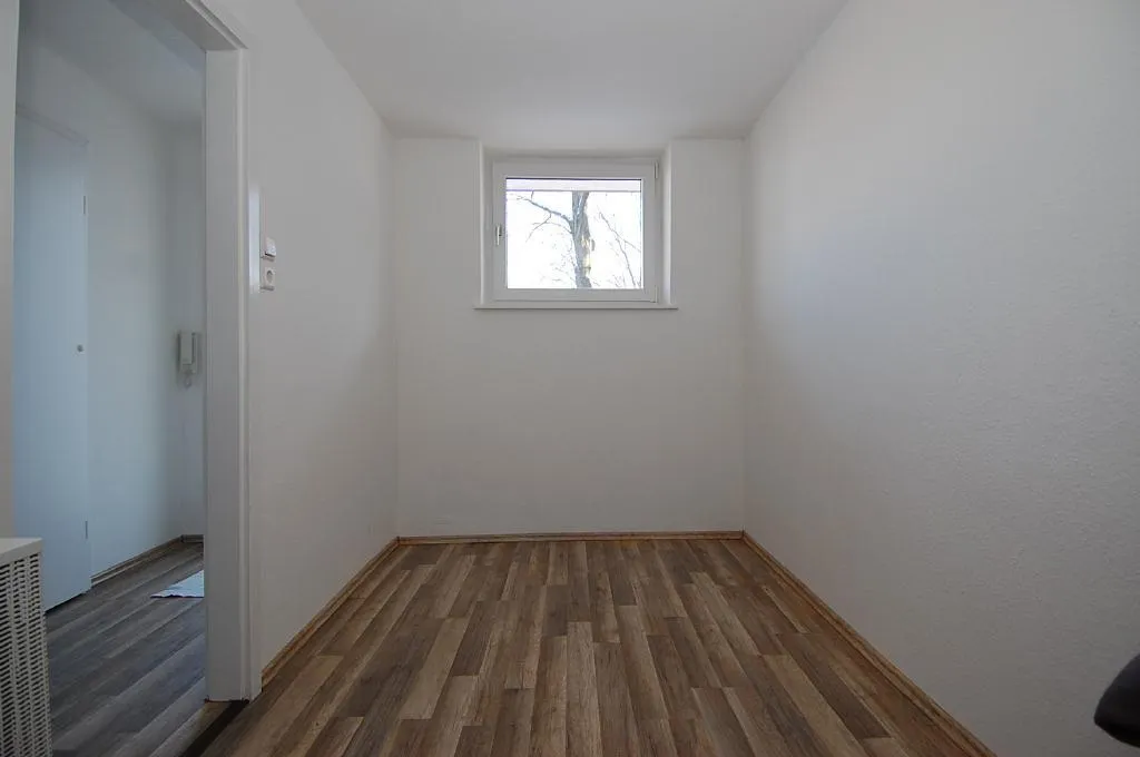 Die Wände sind mit Raufaser tapeziert und frisch gestrichen.