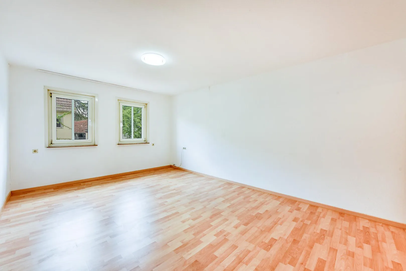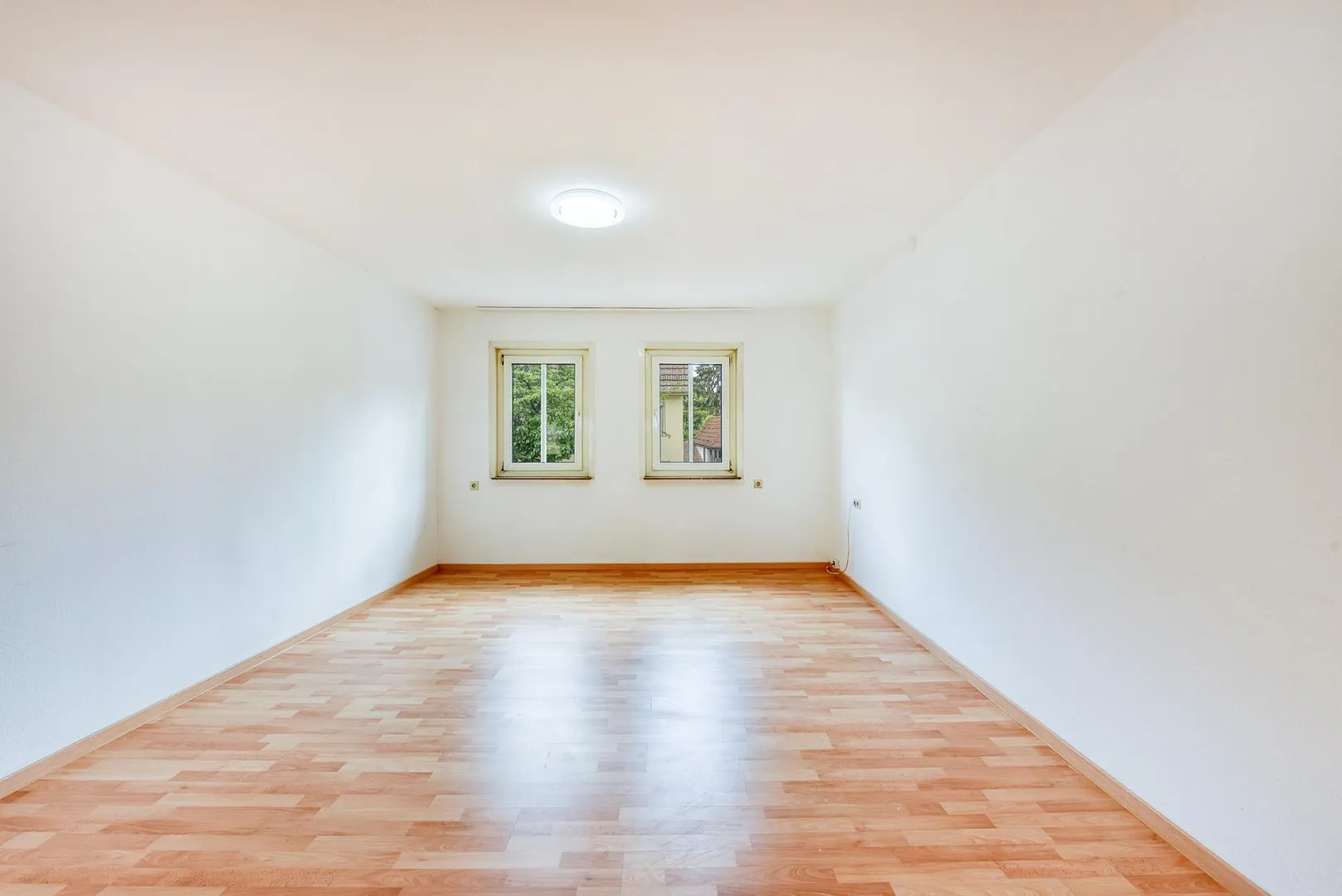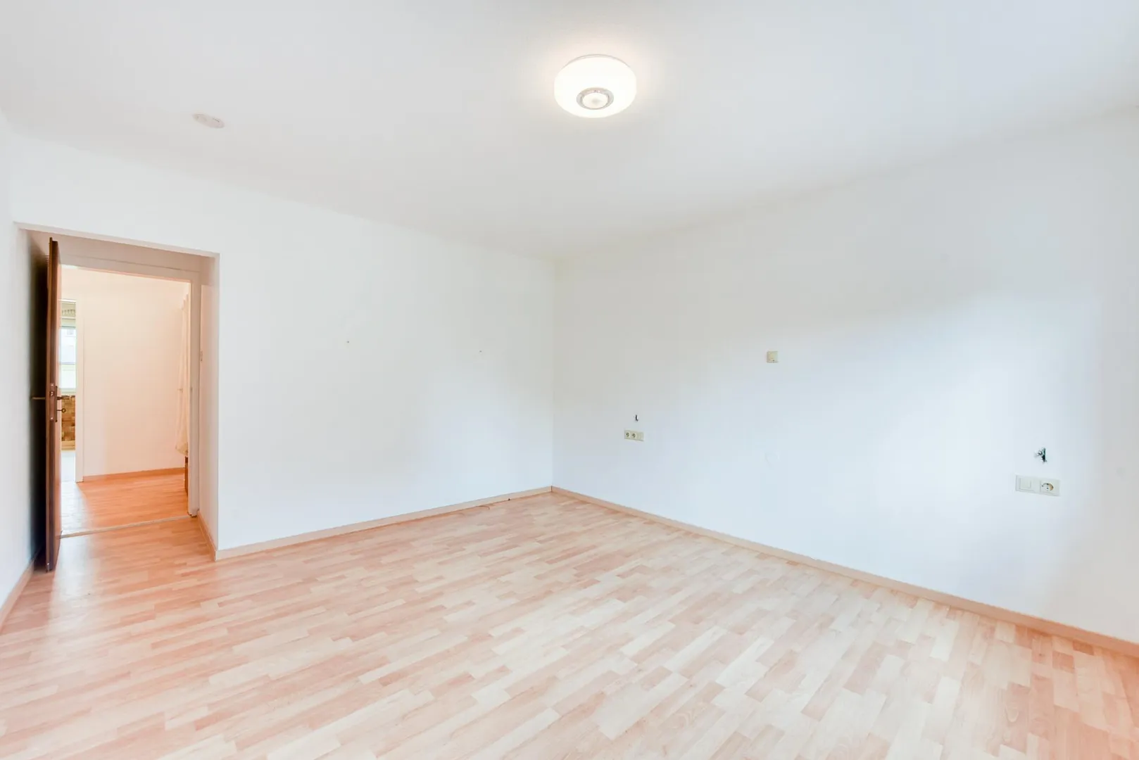 Die Wände sind tapeziert und weiß gestrichen. Die Raumhöhen betragen ca. 2,43 Meter.