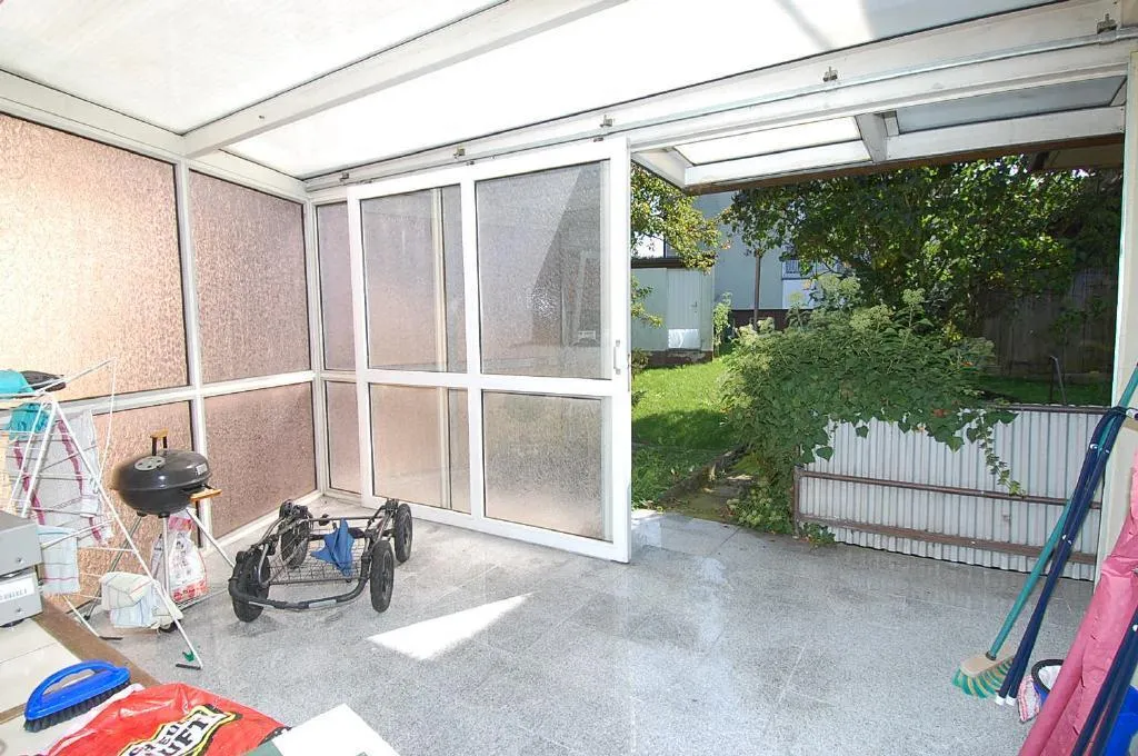 Die Wohnung verfügt über einen ca. 11 m² großen Wintergarten und einen kleinen Garten im Außenbereich.