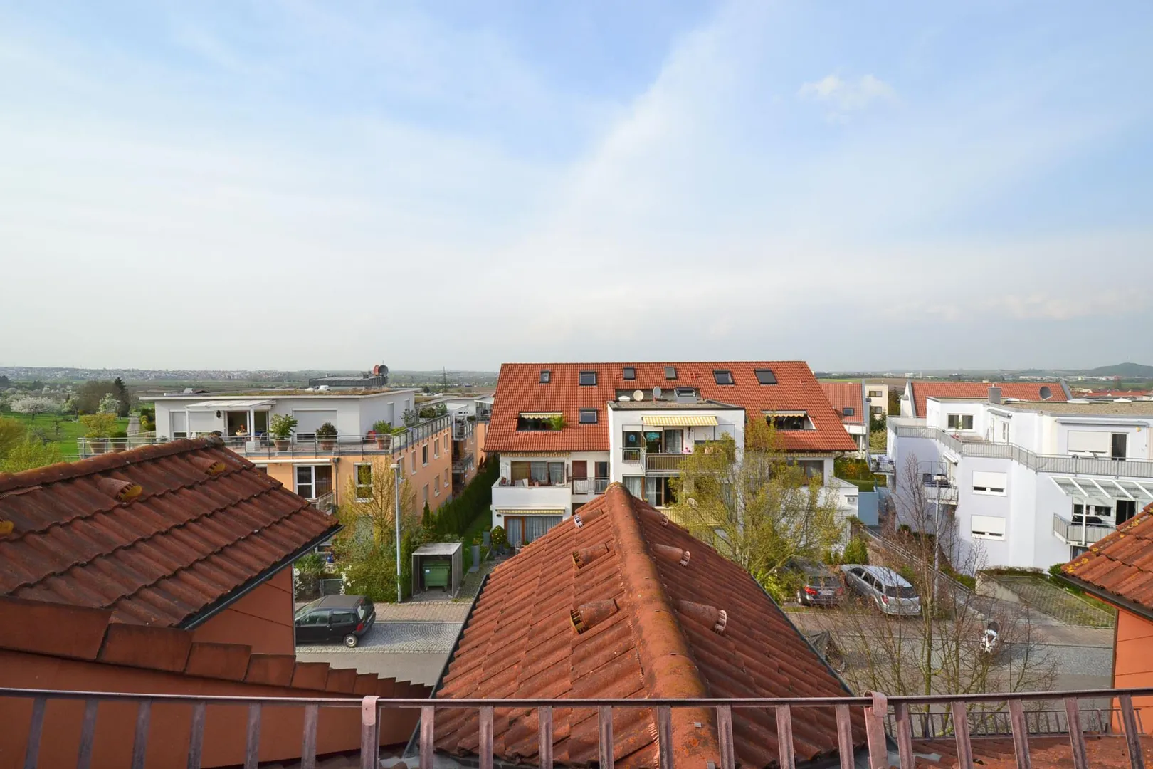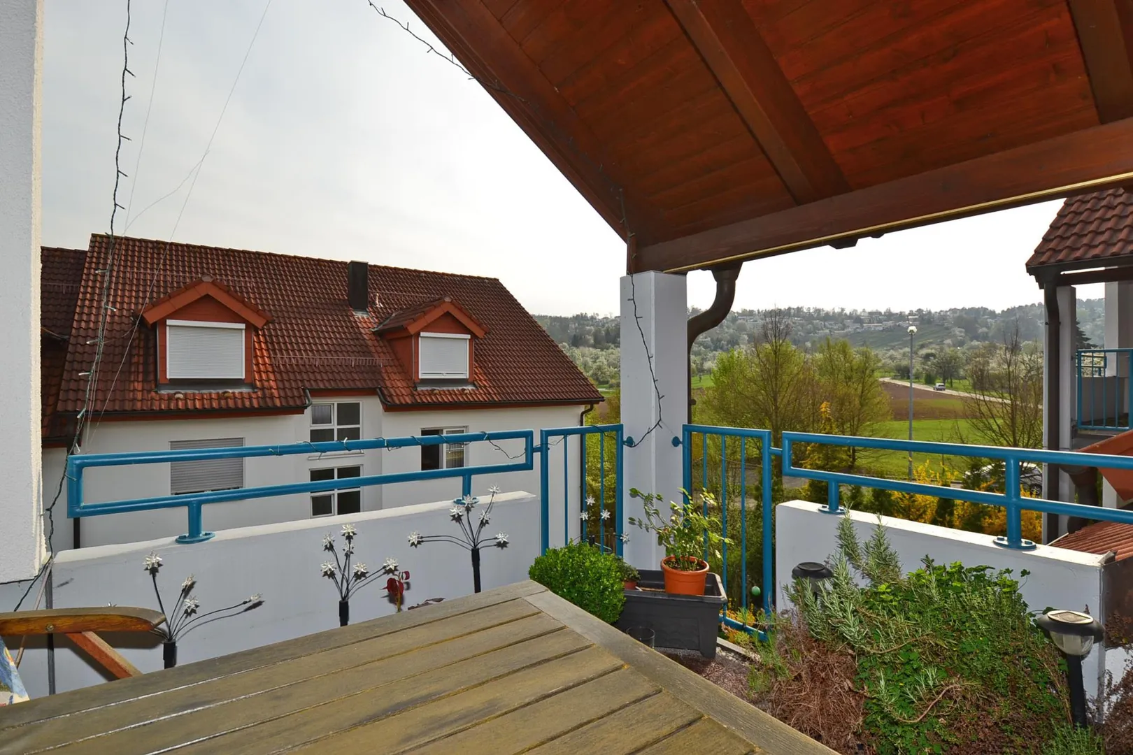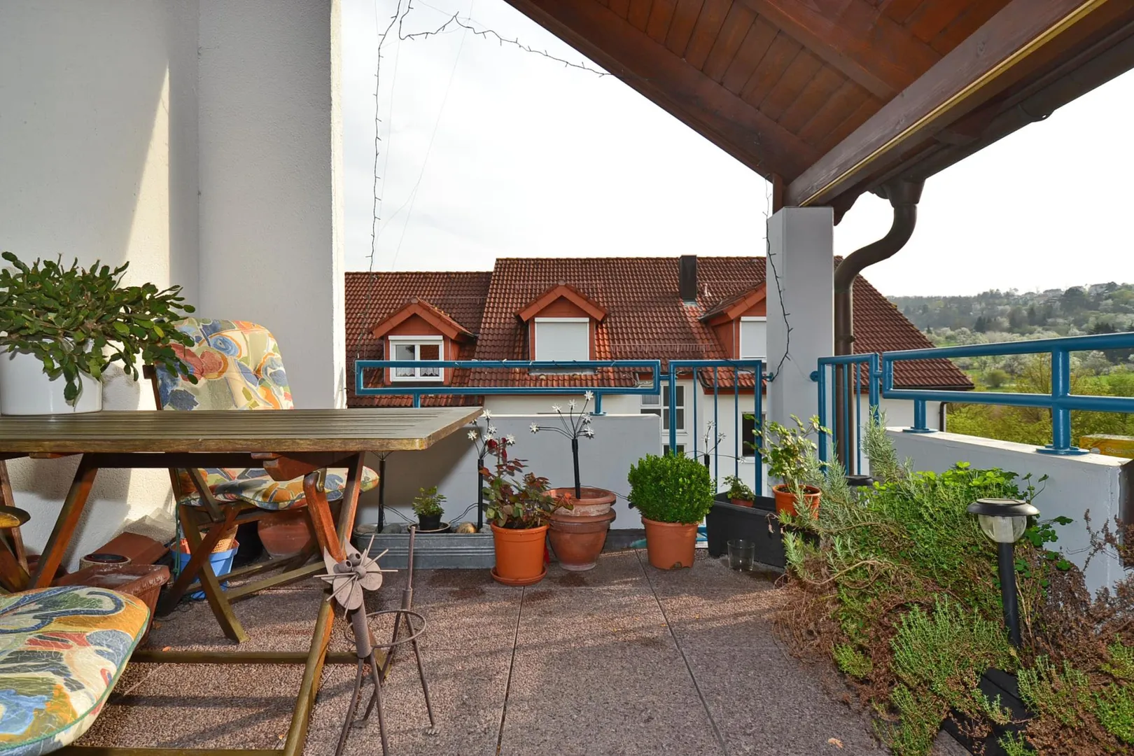 Vom Wohn-/Essbereich gelangen Sie auf die ruhig gelegene Terrasse. Diese ist nach Süden ausgerichtet und komplett überdacht.