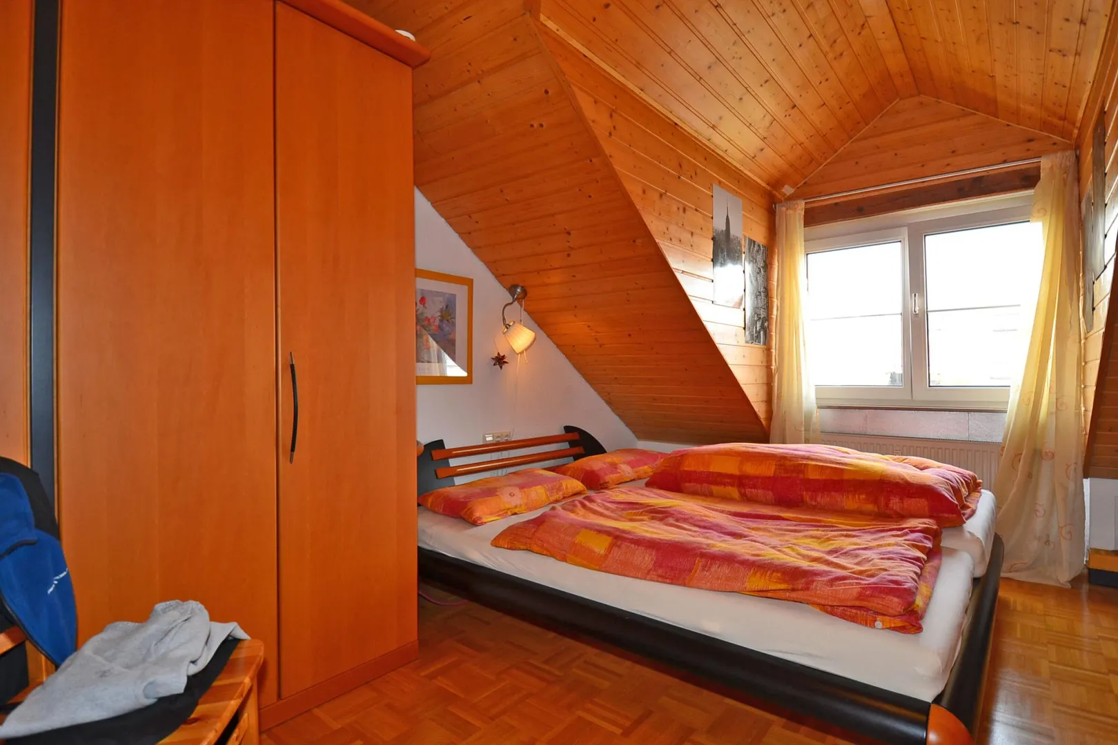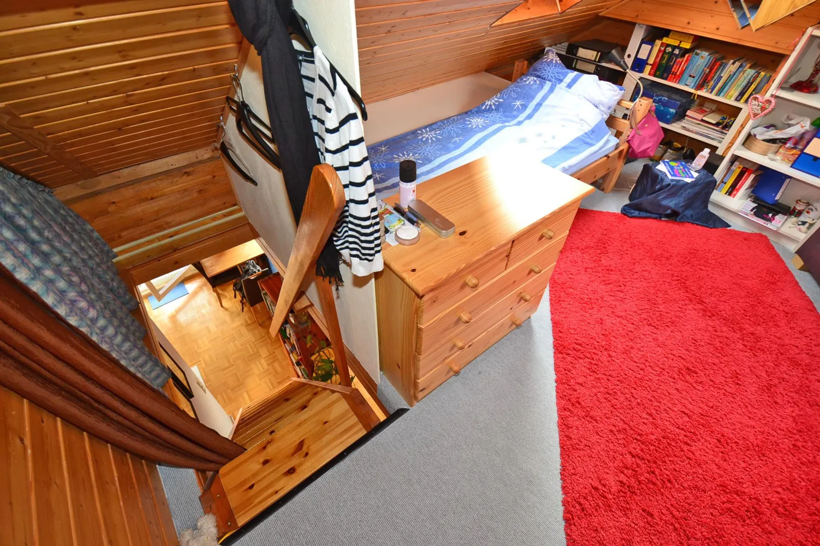 Trotz der Dachschrägen können hier auch 3-türige Kleiderschränke aufgestellt werden.
