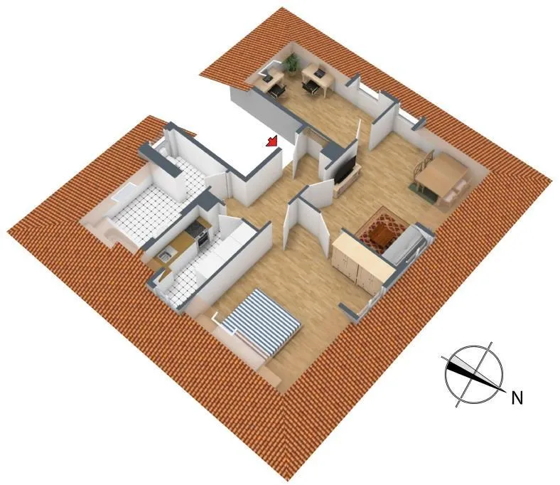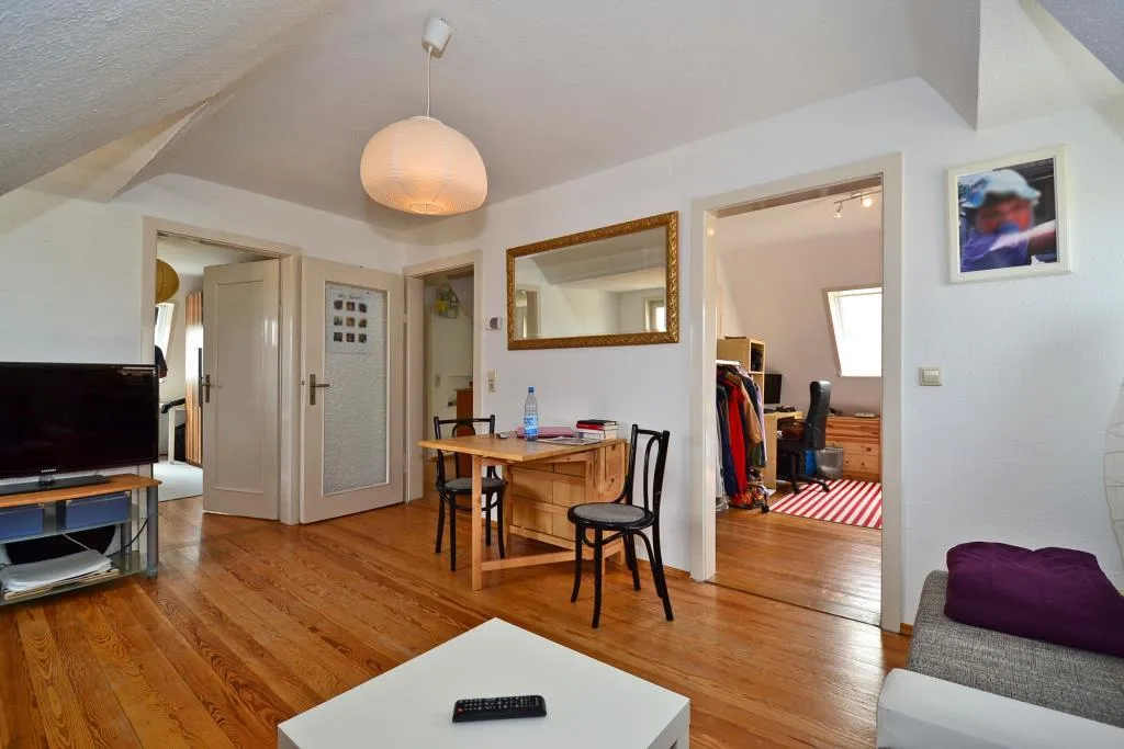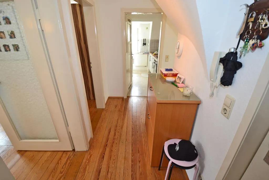 Diese gemütliche 3-Zimmer-Dachgeschoss-Etage ohne Balkon befindet sich im 3. Obergeschoss.