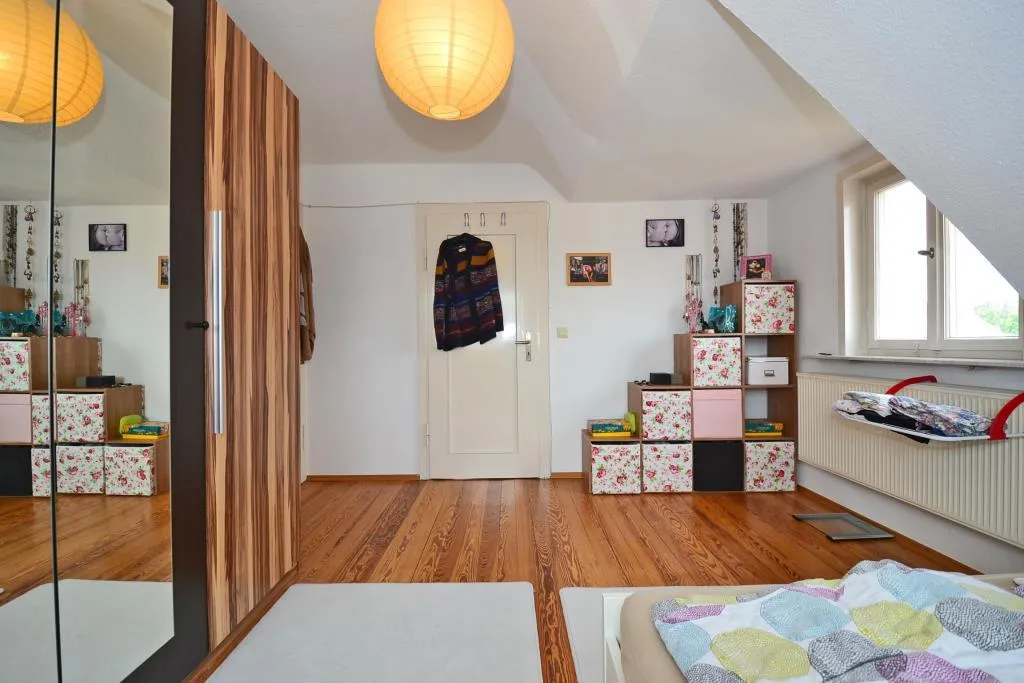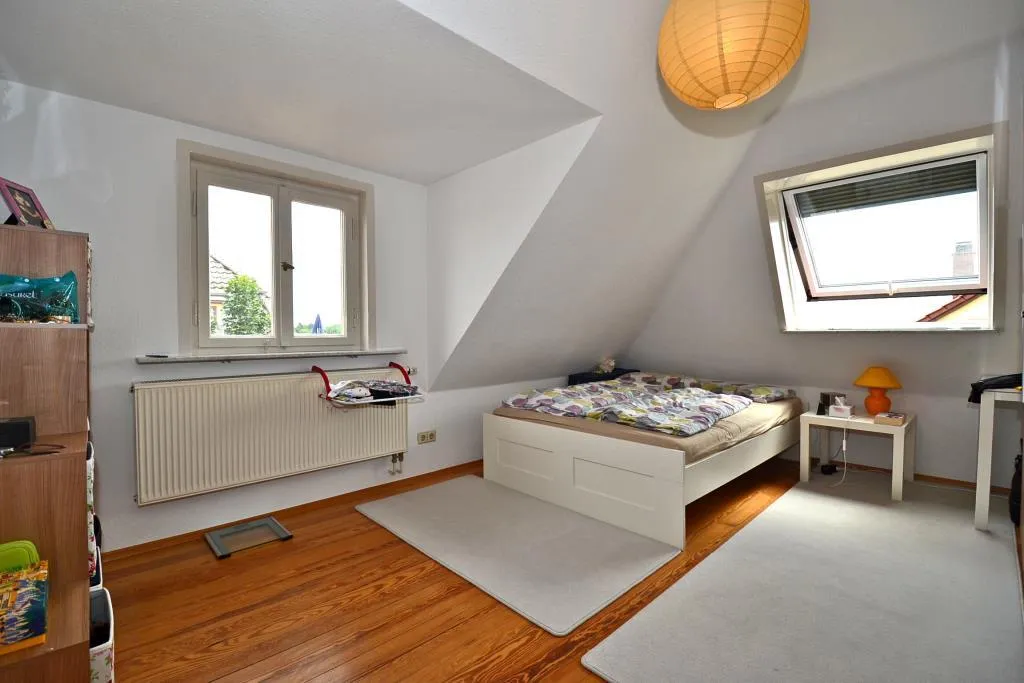 Diese gemütliche 3-Zimmer-Dachgeschoss-Etage ohne Balkon befindet sich im 3. Obergeschoss eines freistehenden 4-Familienhauses.