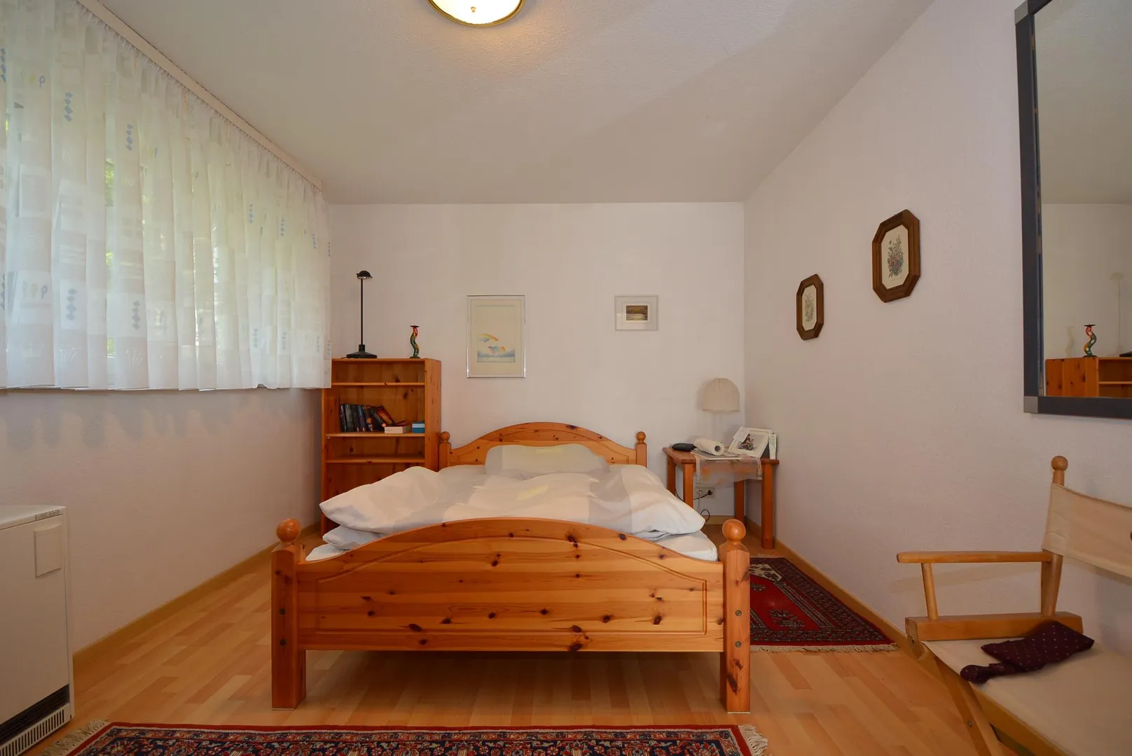 Das Schlafzimmer ist über das Wohnzimmer begehbar.