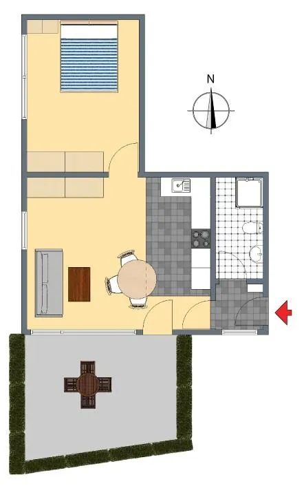 Diese gemütliche und sonnige 2-Zimmer-Einliegerwohnung befindet sich im Souterrain (Untergeschoss) eines freistehenden 2-Familienhauses.
