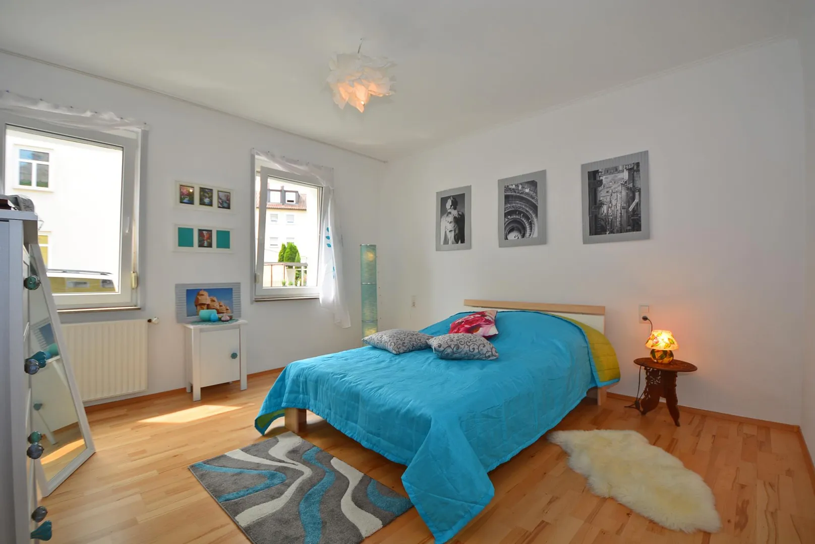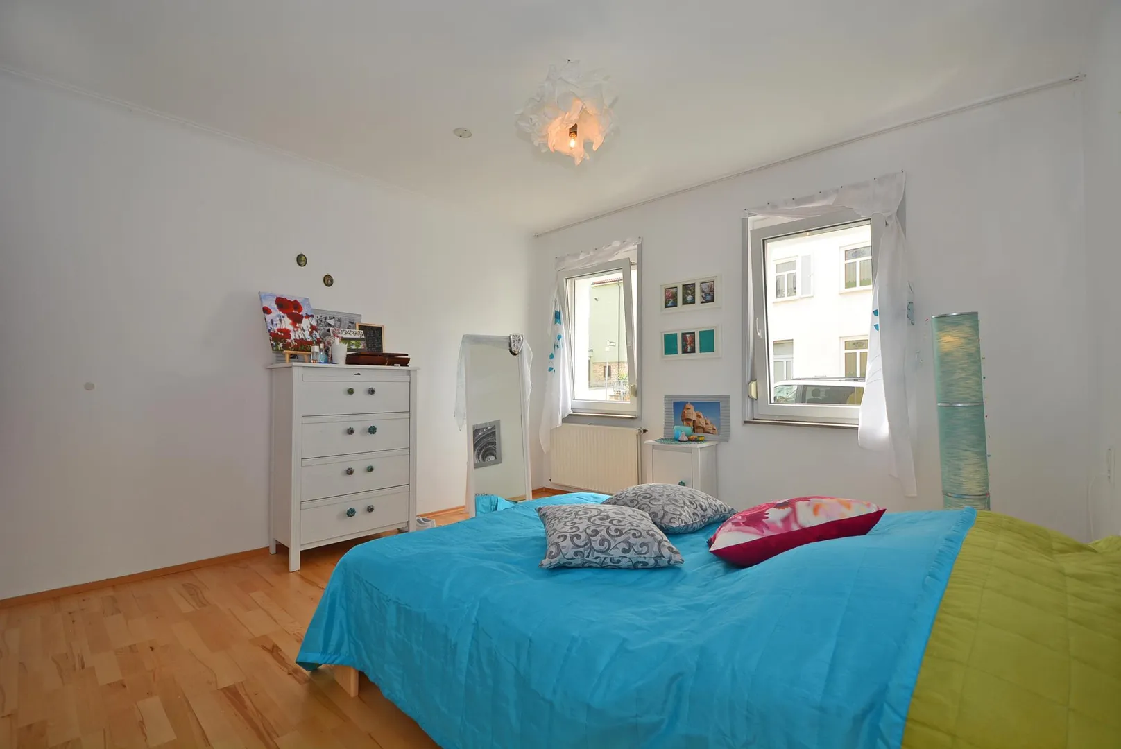 Das Wohnzimmer sowie das Schlafzimmer sind nach Westen ausgerichtet.