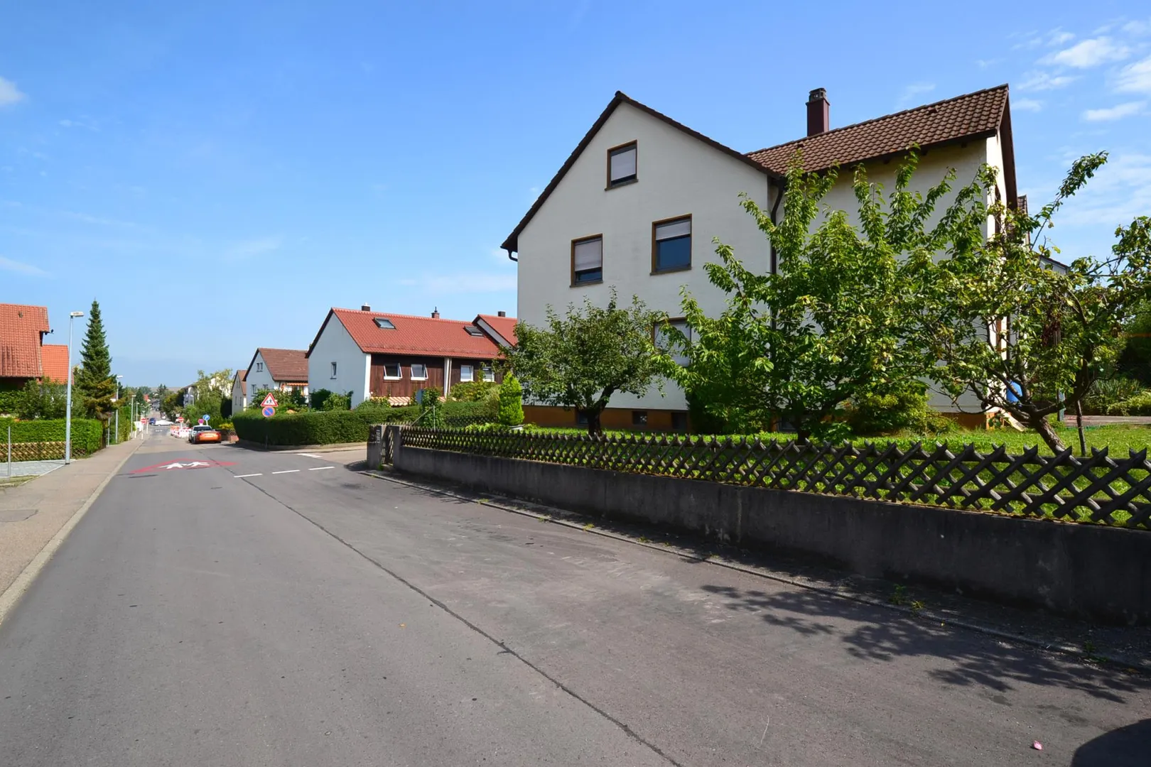 Die Umgebung ist geprägt von lockerer, meist 2-geschossiger Wohnbebauung mit begrünten Grundstücken.