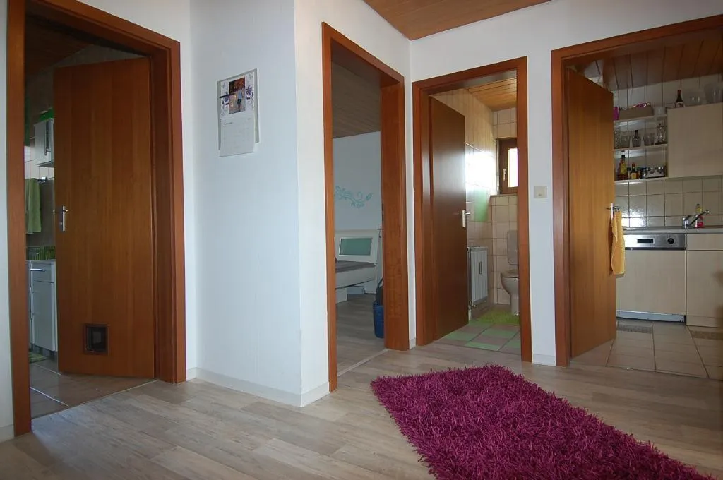 Im Flur und in den Zimmern wurde 2010 ein Linoleumboden in Laminatoptik fachmännisch verlegt. Die Wände sind mit Raufaser tapeziert. Die Wohnung wird in einem gepflegten Zustand übergeben. Malerarbeiten sind beim Einzug zu machen. Die Decken sind mit Holzpanellen verkleidet.