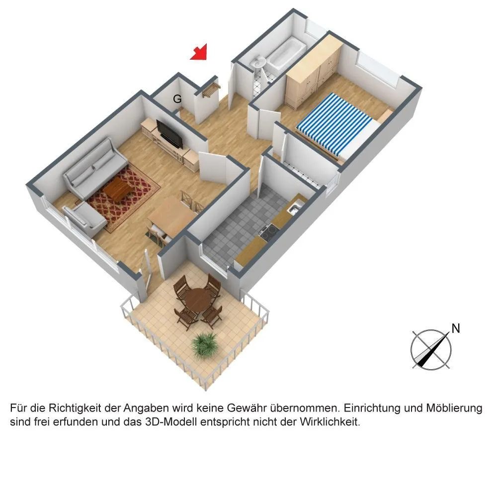 Bitte beachten Sie, dass die Wohnung auf den Bildern größer wirkt als sie eigentlich ist. Die Bilder sollen Ihnen zur Orientierung dienen. Grundrisse und Flächen sind dem Exposé anbei.
