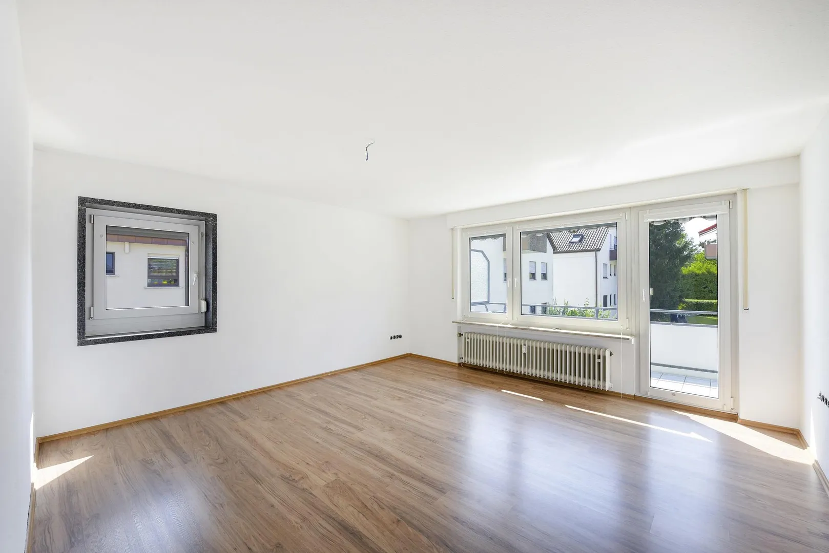 Diese gemütliche 3-Zimmer-Wohnung mit West-Balkon befindet sich im 1. Obergeschoss eines freistehenden 8-Familienhauses.