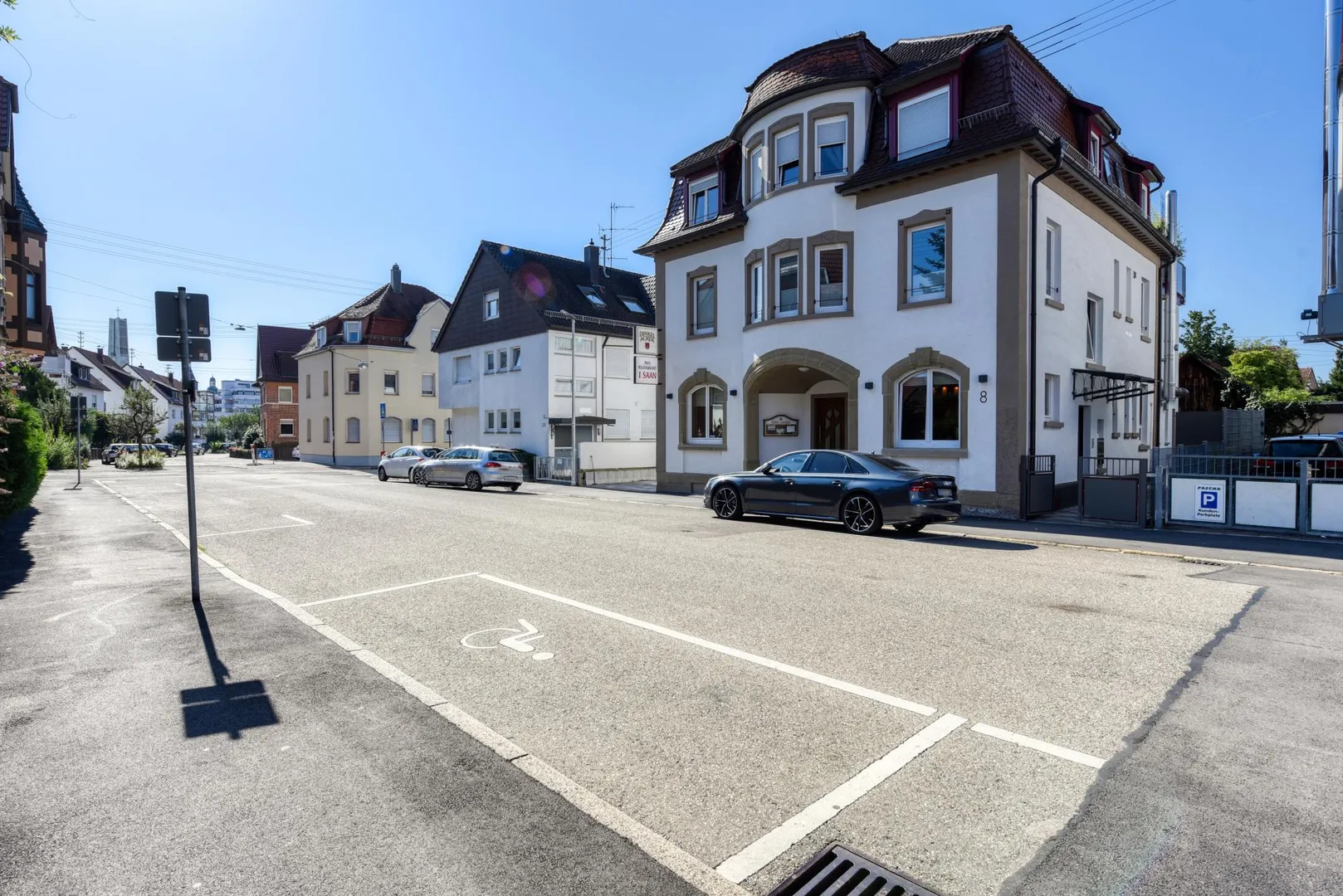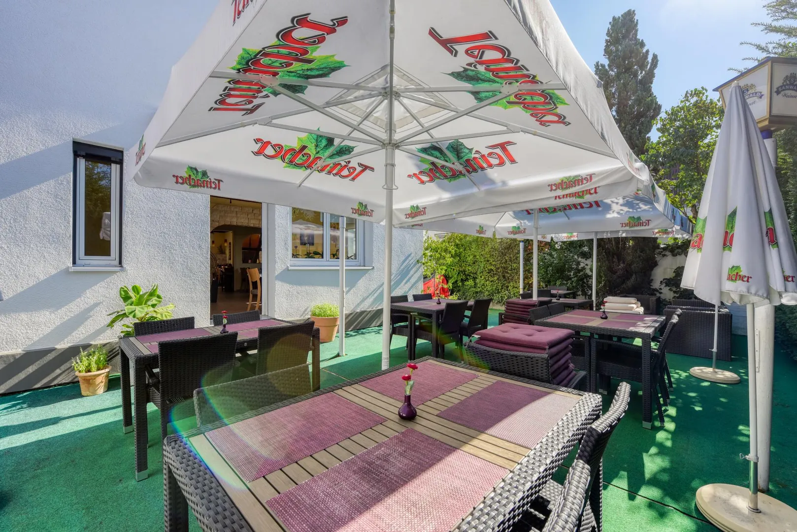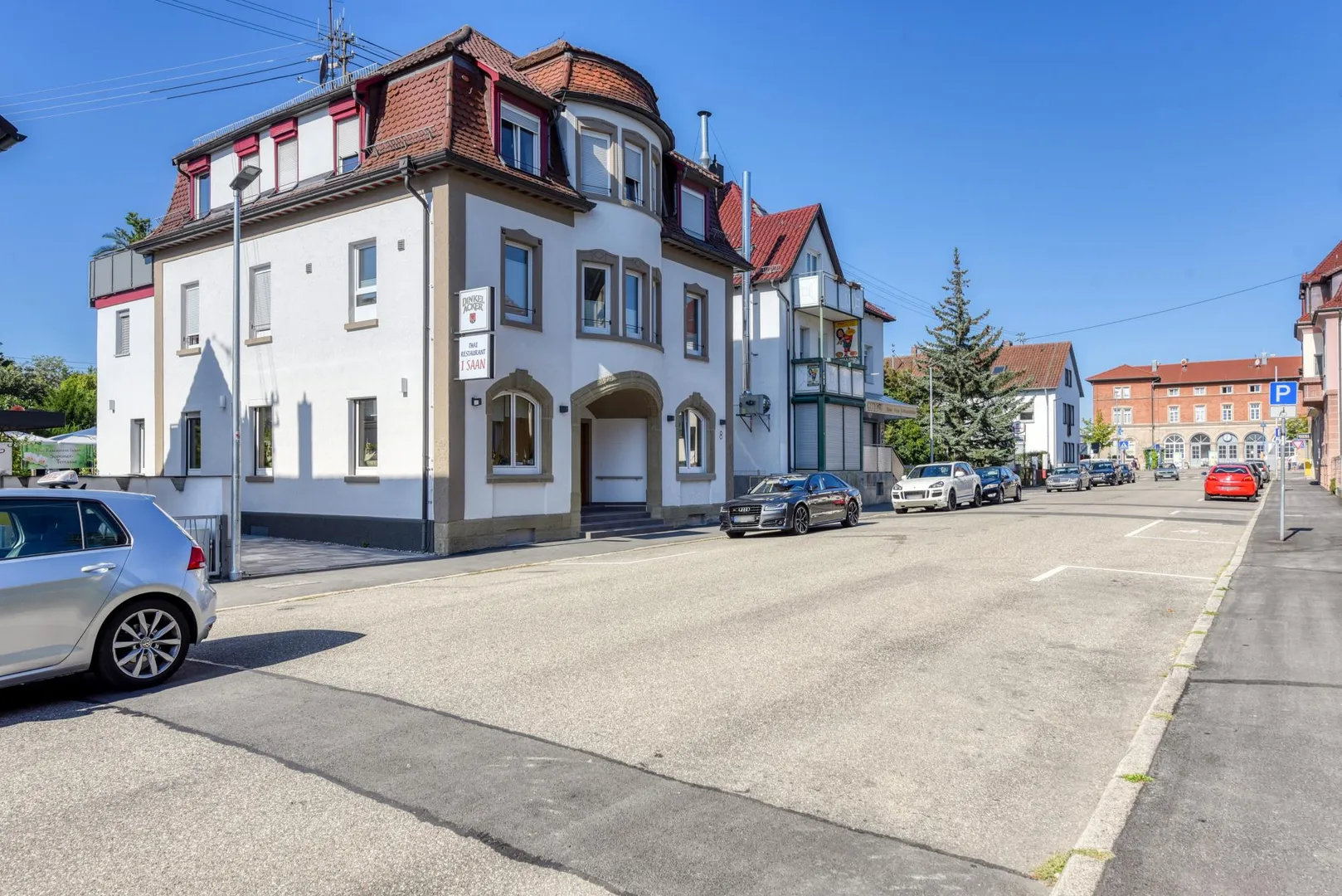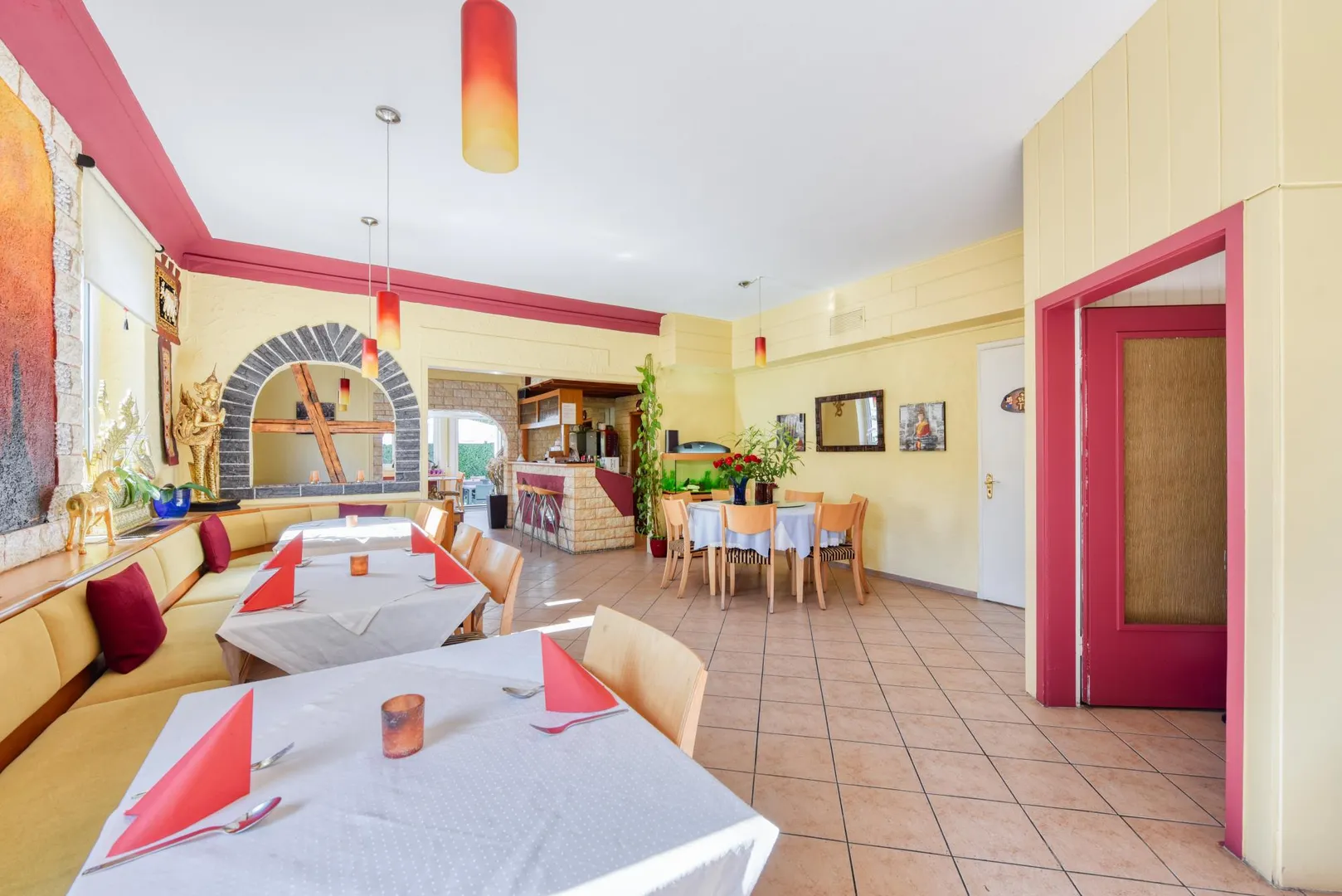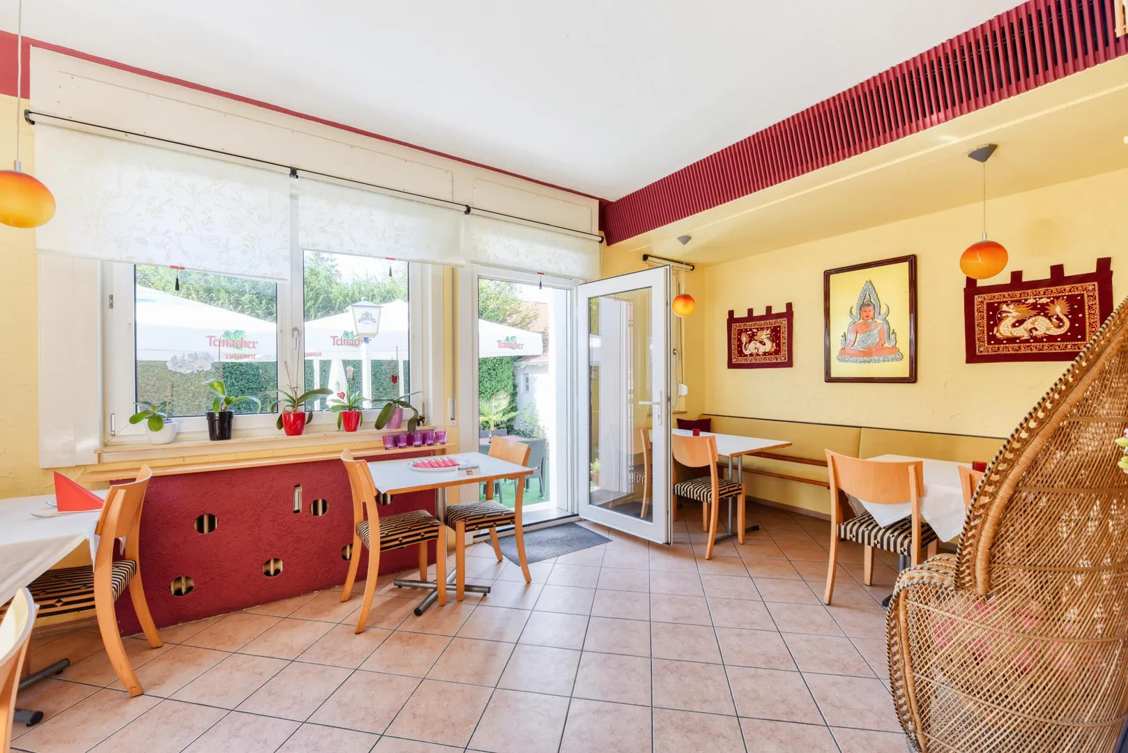 Dieses gepflegte Restaurant mit Außen-Terrasse befindet sich im Erdgeschoss eines freistehenden Wohn- und Geschäftshauses.