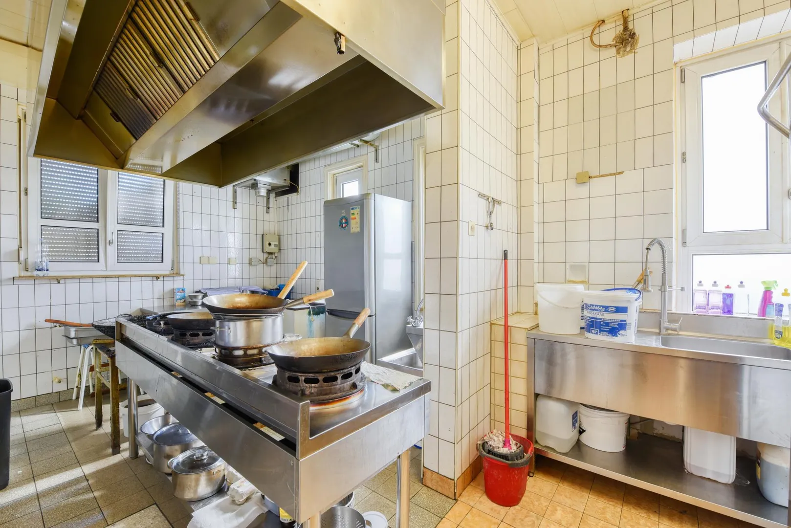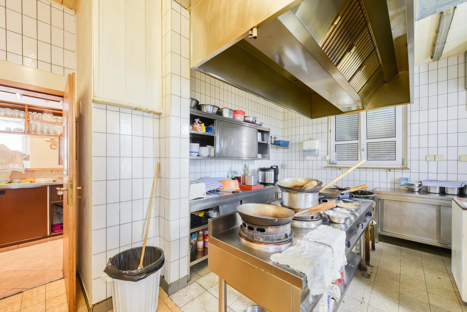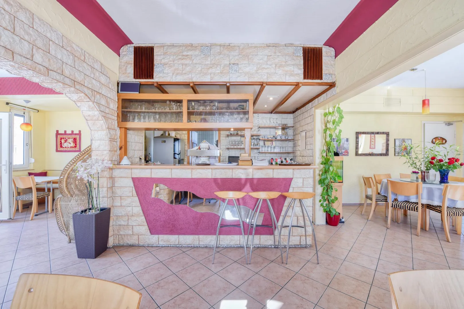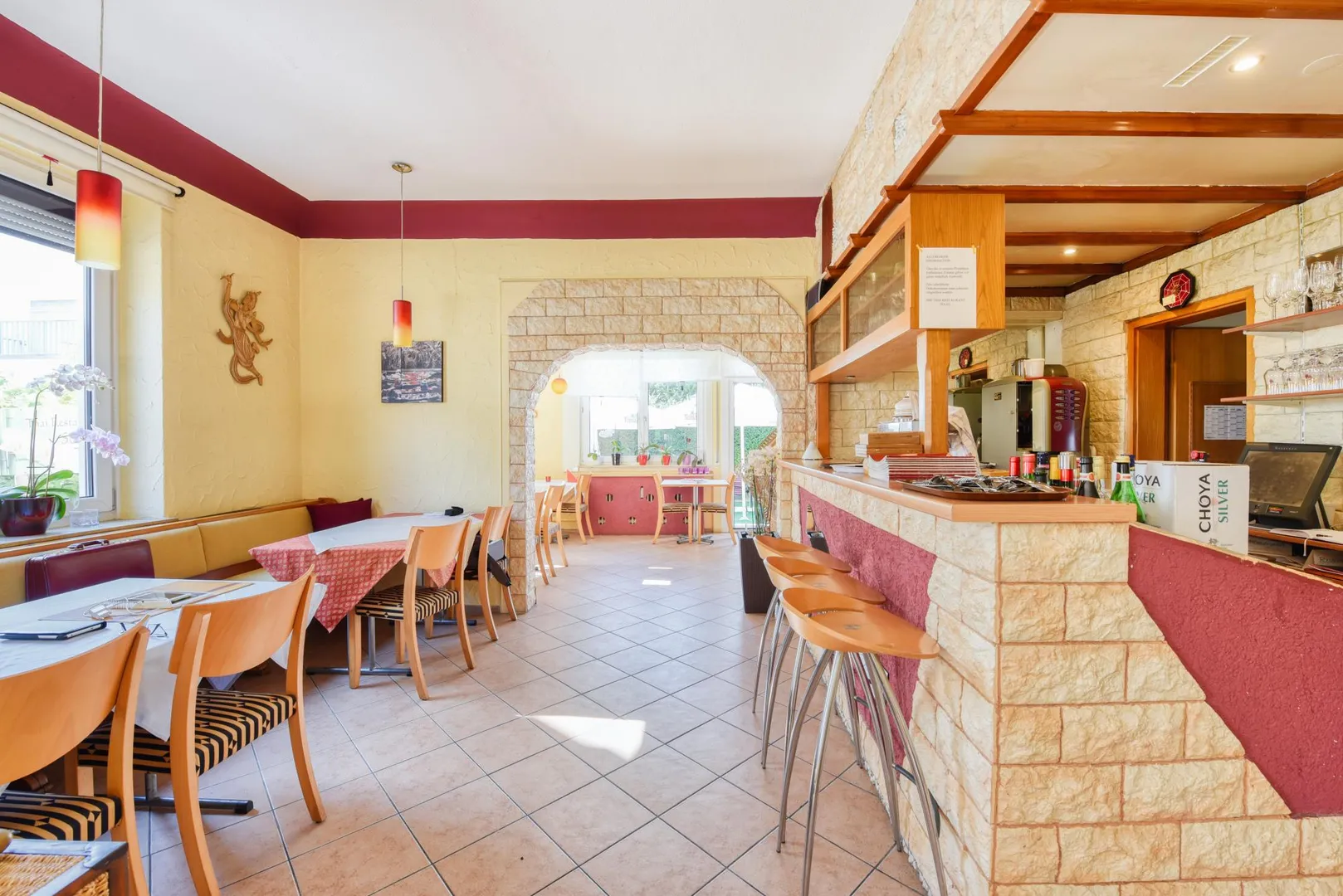 Die Böden in der Gaststätte sind gefliest. Die Raumhöhe beträgt ca. 3 Meter.