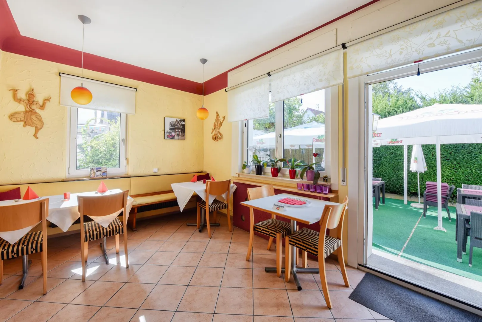 Dieses gepflegte Restaurant mit Außen-Terrasse befindet sich im Erdgeschoss.