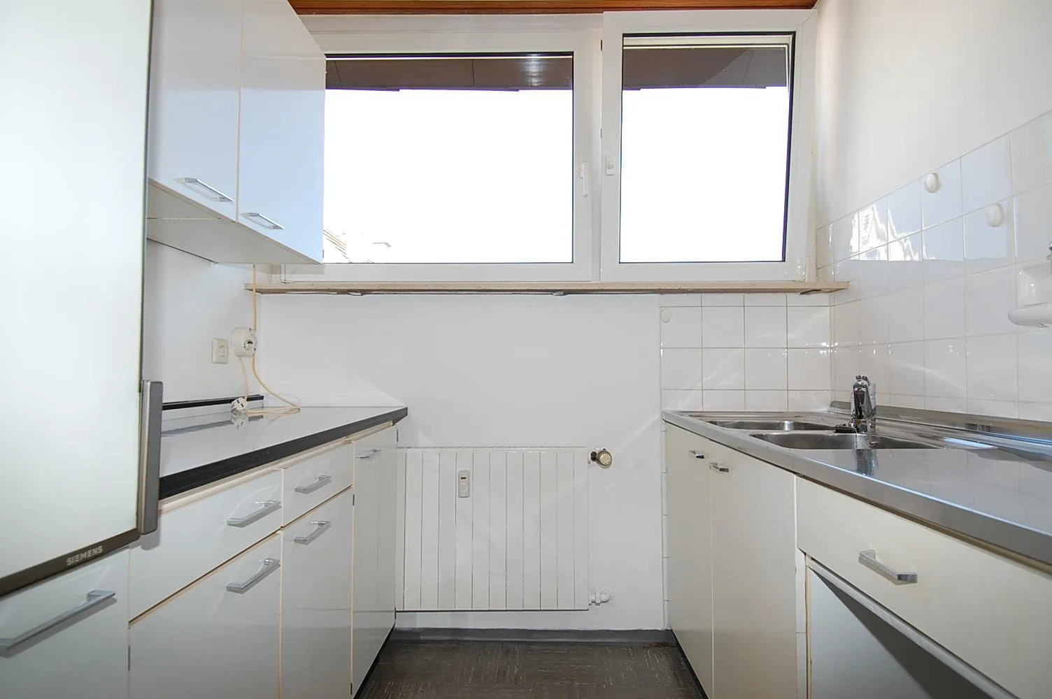 Die gepflegte, aber ältere Einbauküche mit E-Geräten (ohne Spülmaschine) gehört zur Wohnung dazu und ist im Mietpreis bereits enthalten.