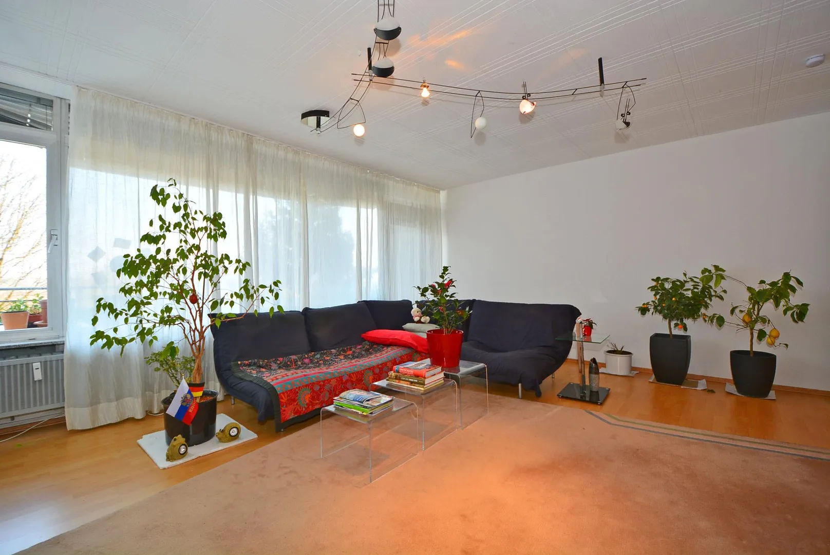 Diese bequeme und renovierte 2 ½ Zimmer-Wohnung befindet sich im Erdgeschoss (mit Balkon) eines extravaganten Hochhauses.