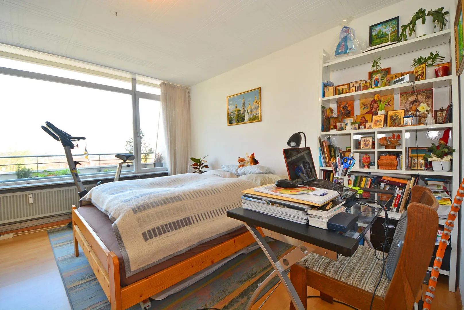 Diese bequeme und renovierte 2 ½ Zimmer-Wohnung befindet sich im Erdgeschoss (mit Balkon) eines extravaganten Hochhauses.