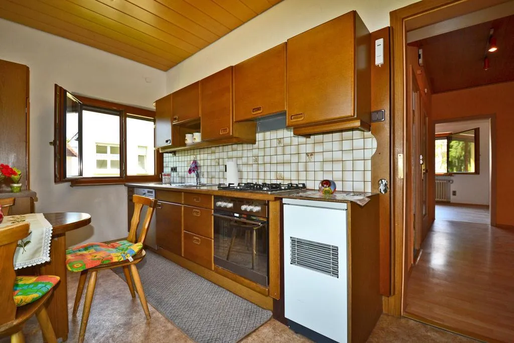 Die Küche ist mit einer Einbauküche ausgestattet. Die älteren Möbel sind frisch aufgearbeitet worden. Die Einbauküche ist mit allen E-Geräten ausgestattet.