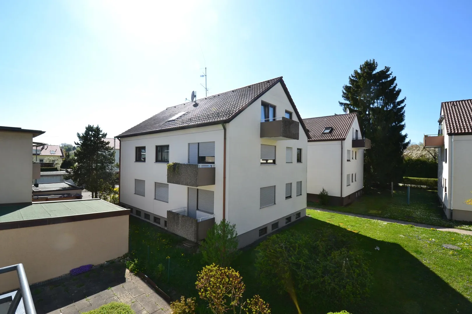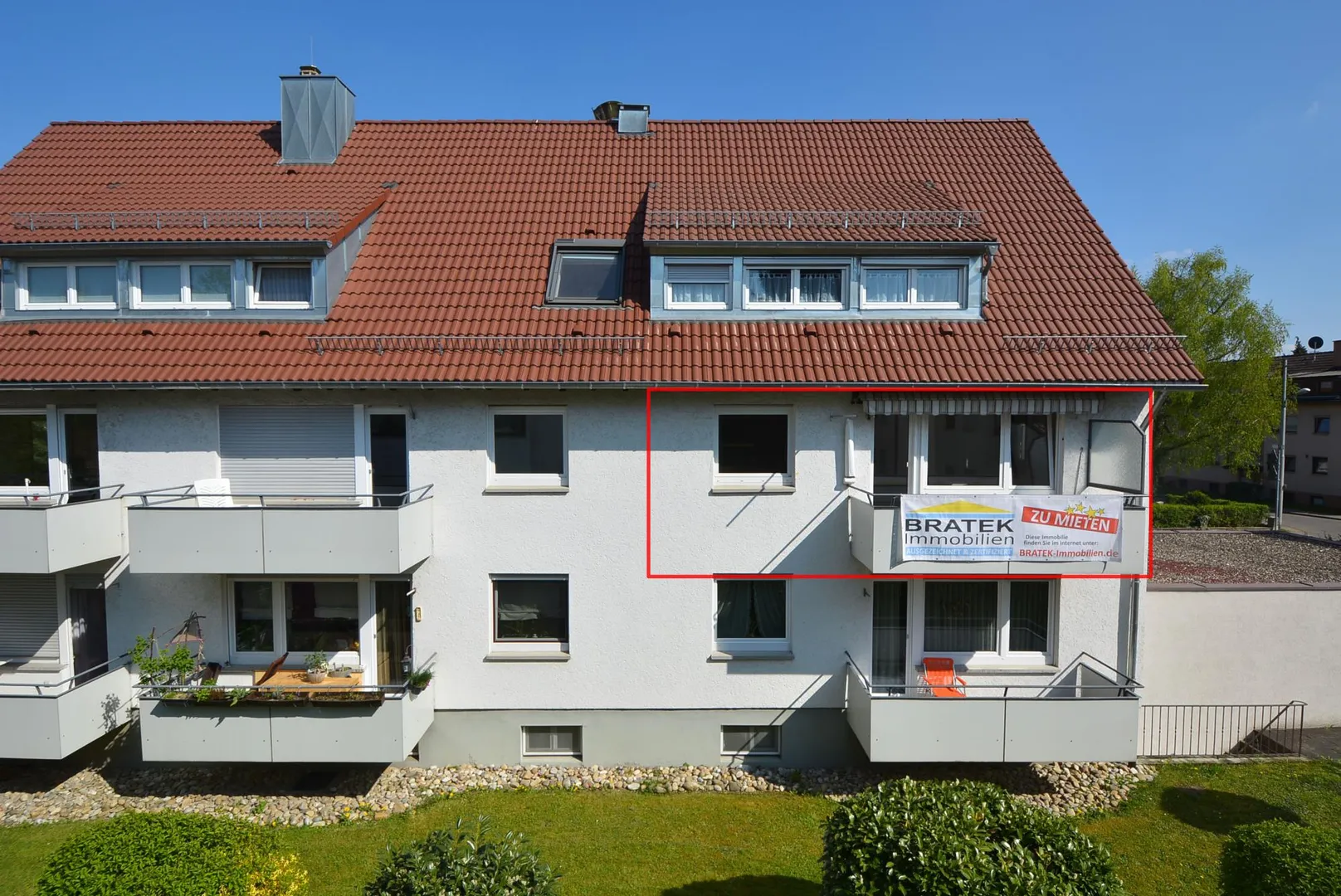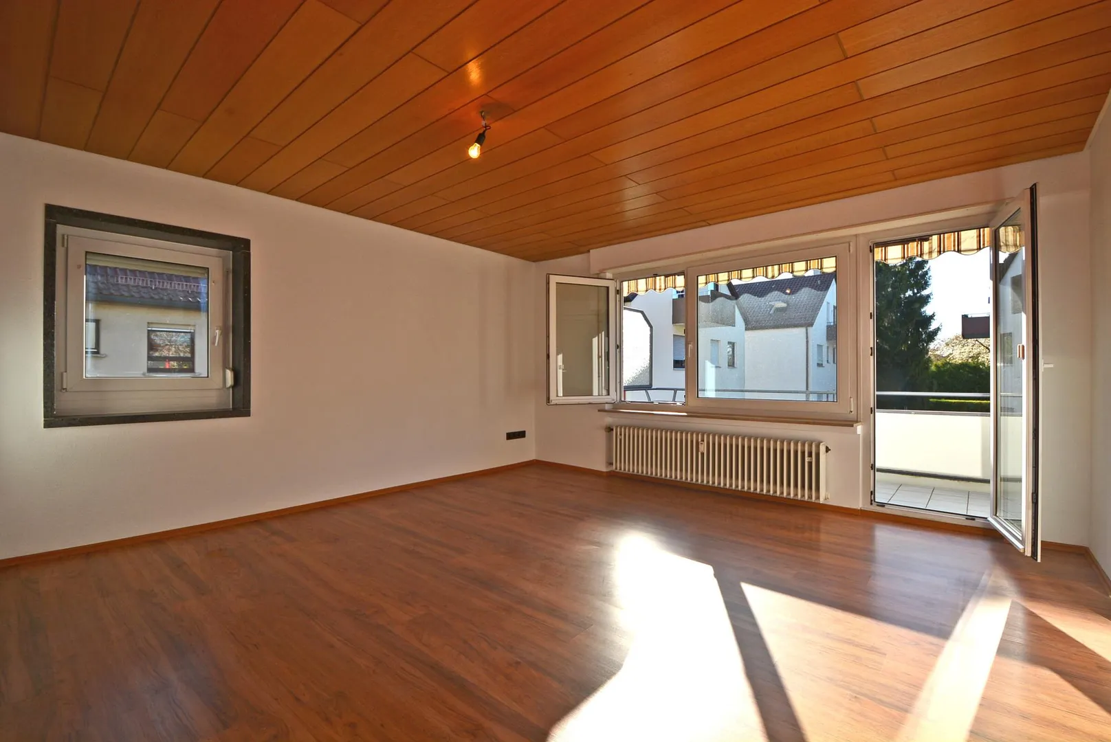 Der ca. 5 m² große West-Balkon ist vom Wohnzimmer begehbar und mit einer Markise ausgestattet.