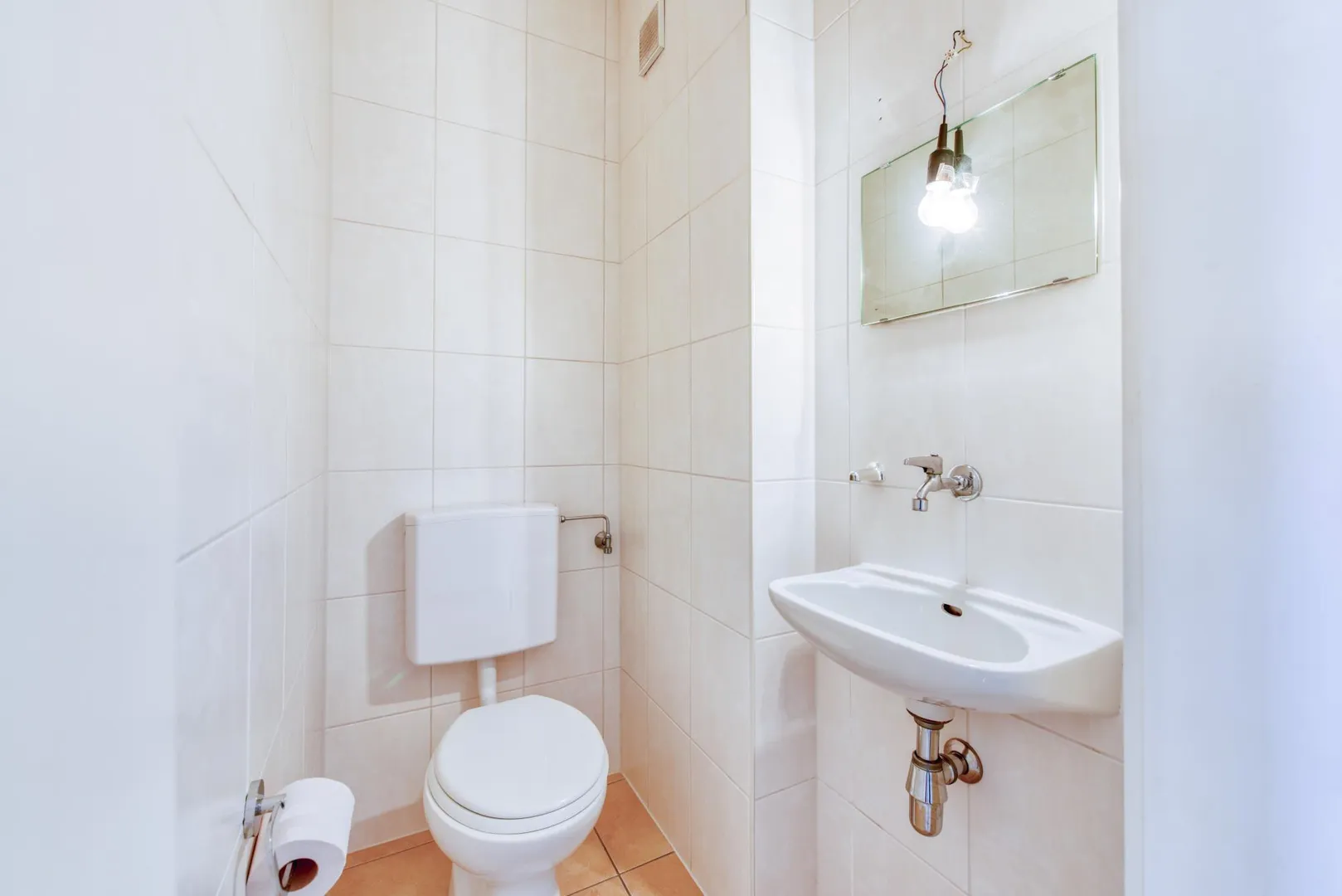 Die Zimmer sind mit Laminatböden ausgestattet. Aktuell wurde im Schlafzimmer ein neuer Laminatboden verlegt. Im Flur gibt es Solnhofer-Platten. Im Bad, im WC sowie in der Küche sind die Böden gefliest.