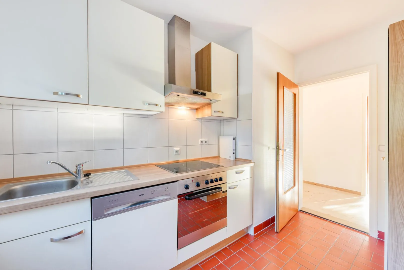 Die Küche ist mit einer Einbauküche ausgestattet. Die Einbauküche verfügt über einen Kühlschrank, einen Gefrierschrank, einen Herd, einen Backofen, einen Dunstabzug, eine Spülmaschine sowie Unter- und Oberschränke. Die E-Geräte sind funktionsfähig. Für die künftige Funktionsfähigkeit der E-Geräte übernimmt der Vermieter keine Haftung.