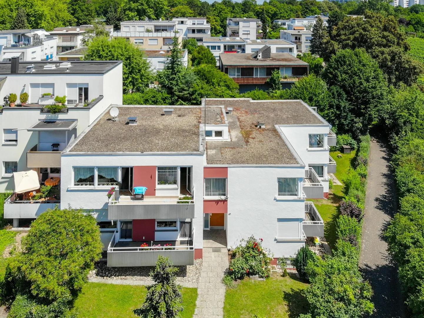 Gemeinschaftlich gibt es einen Fahrradabstellraum, einen Trocknerraum sowie einen Trockenplatz im Freien.