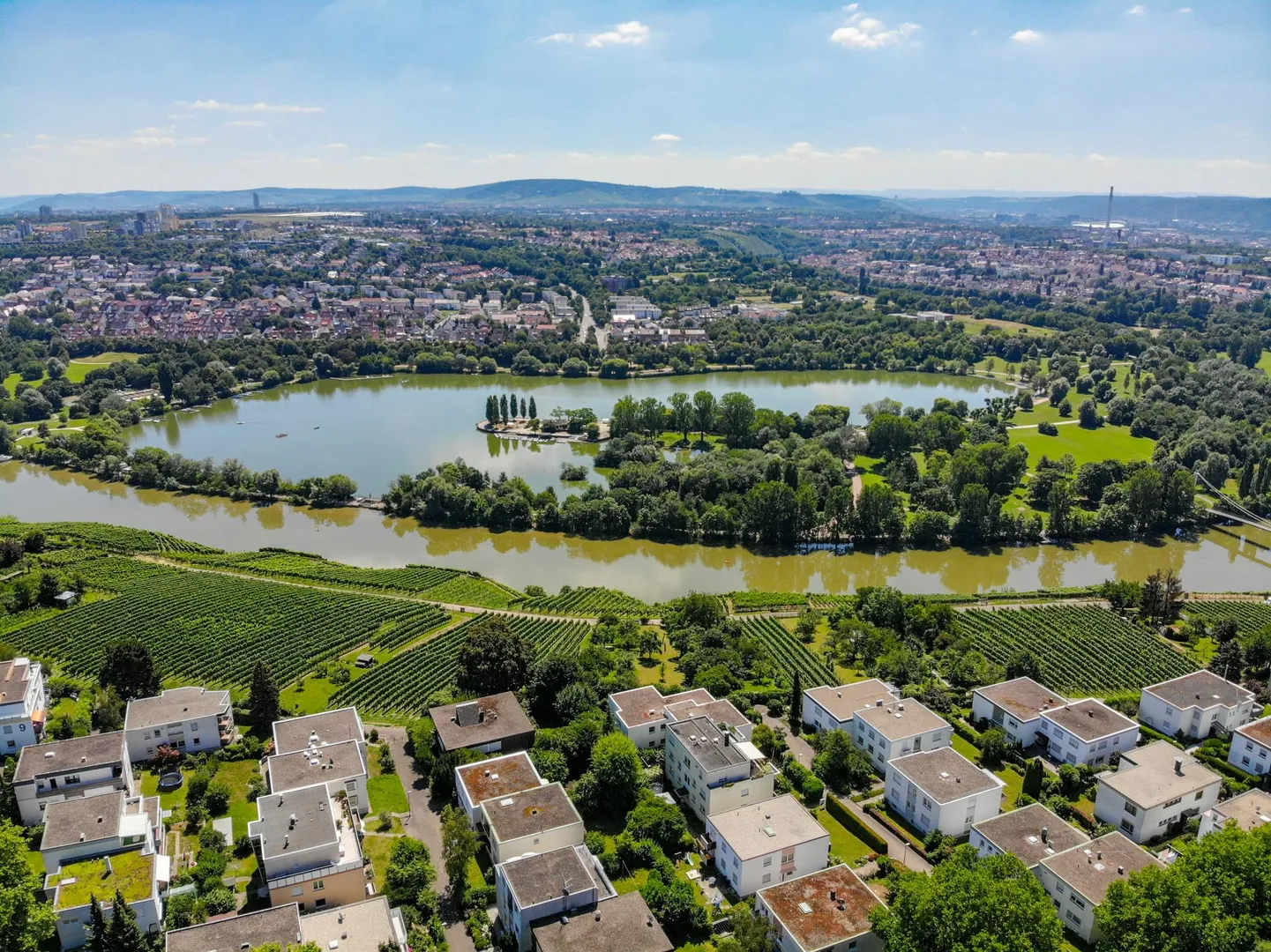 Das Haus liegt direkt an den Weinbergen und Schrebergärten mit traumhaften Fern- und Wasserblick. Zum Neckar und zum Max-Eyth-See führt ein direkter Weg runter.