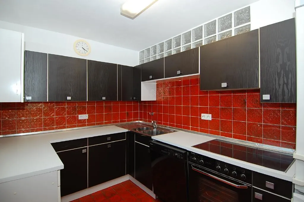 Die Böden im Badezimmer und in der Küche sind mit nostalgischen Fliesen gefliest.