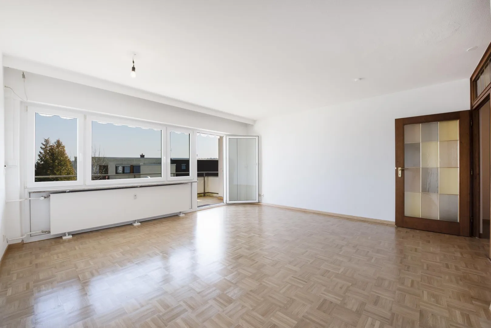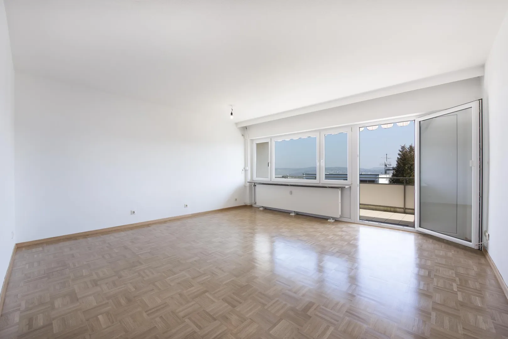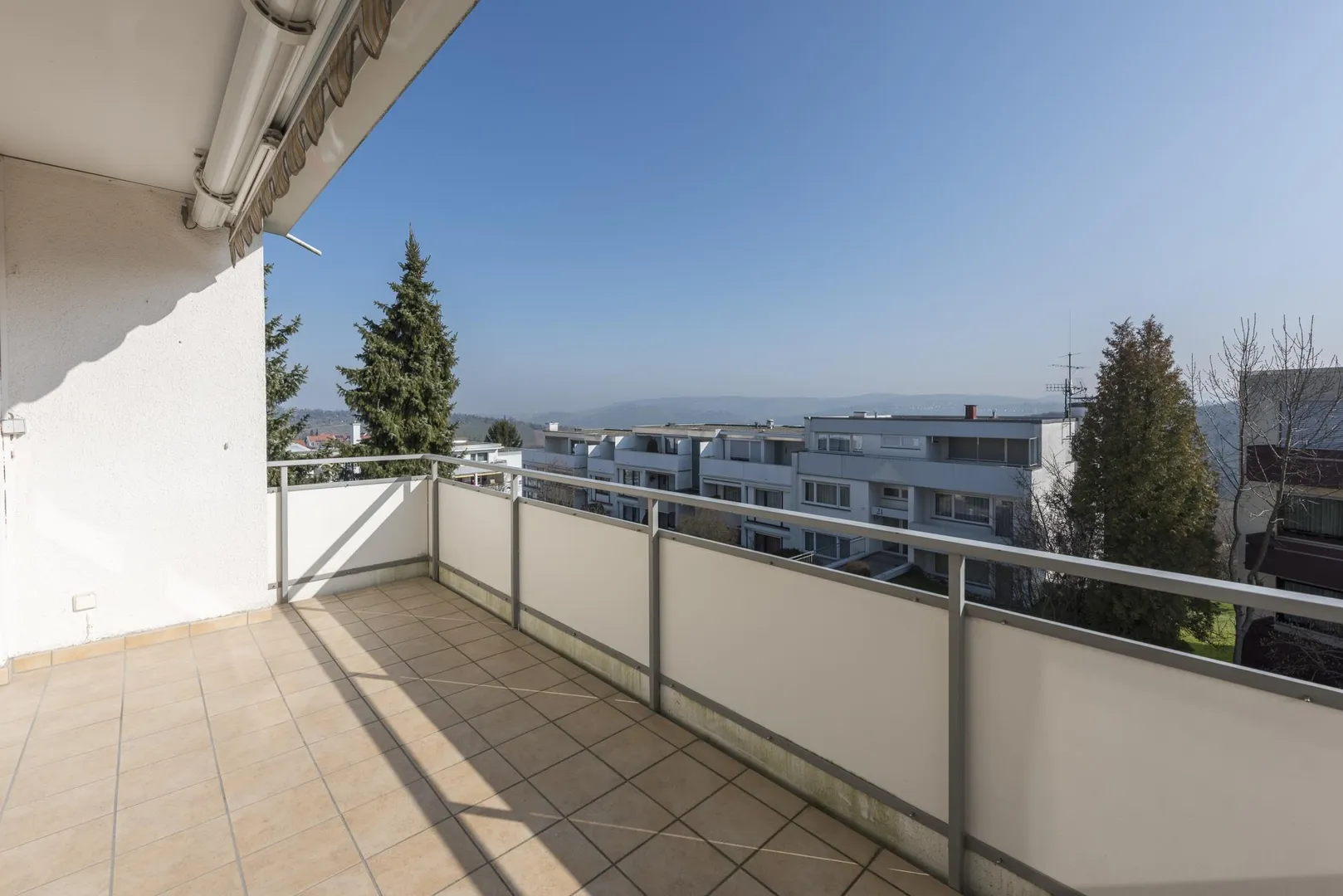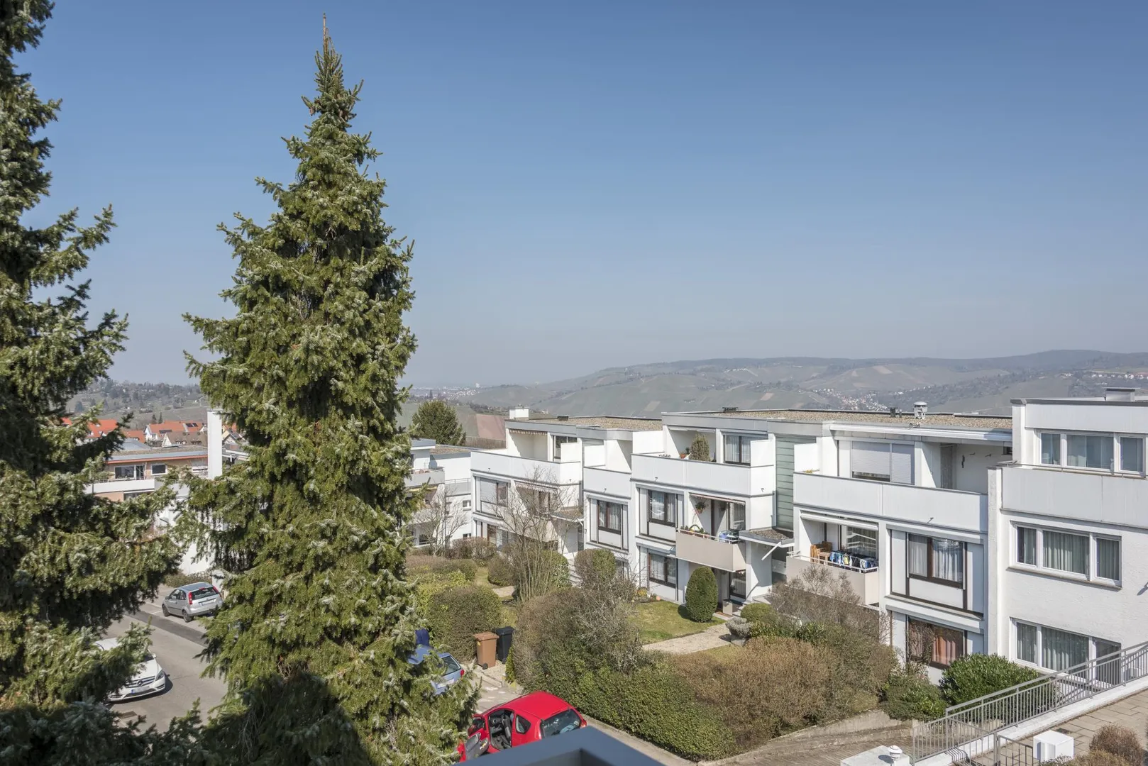 Der ca. 10 m² große Ost-Balkon mit tollem Fernblick ist teilüberdacht, mit einer elektrischen Markise ausgestattet und ist vom Wohnzimmer begehbar.