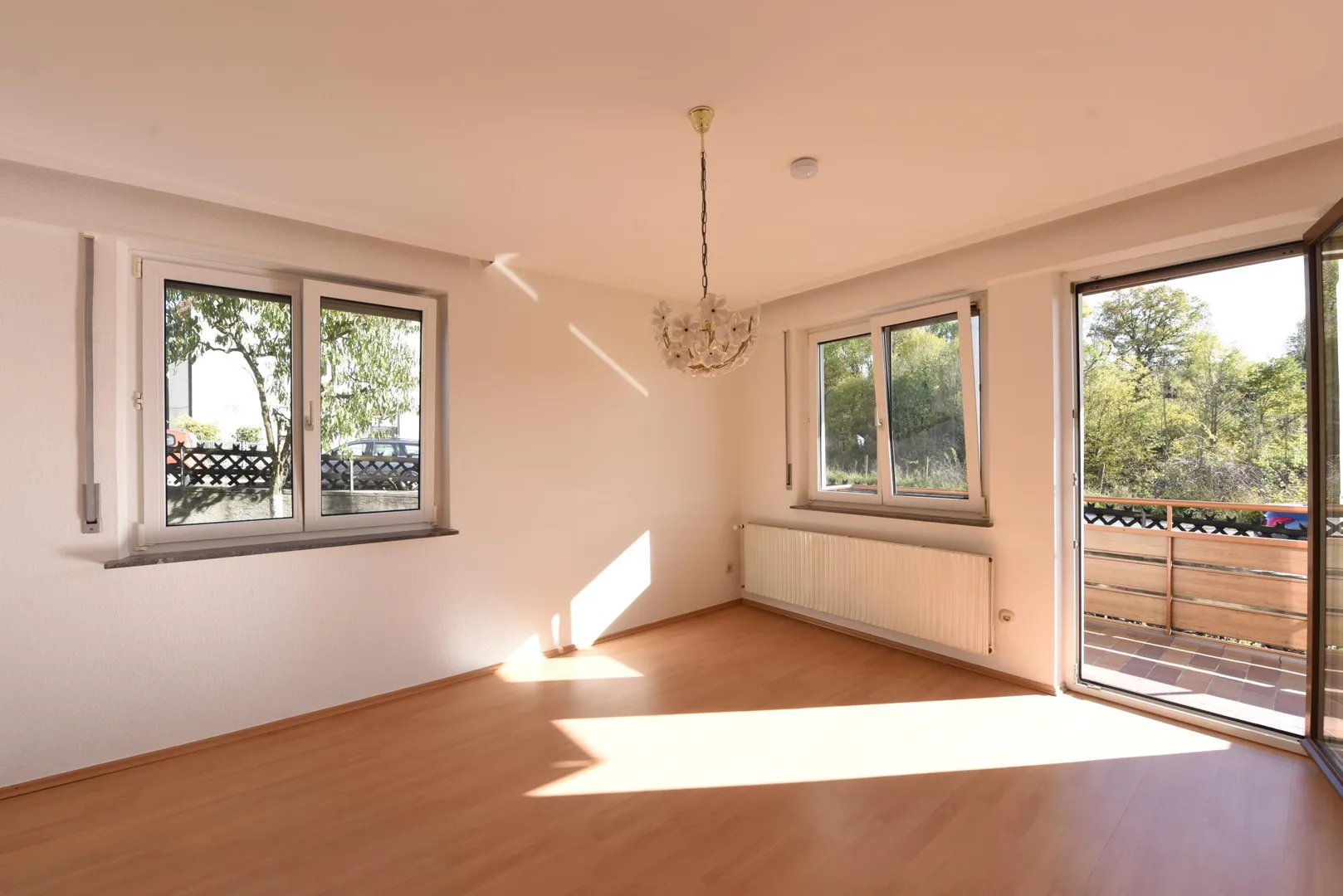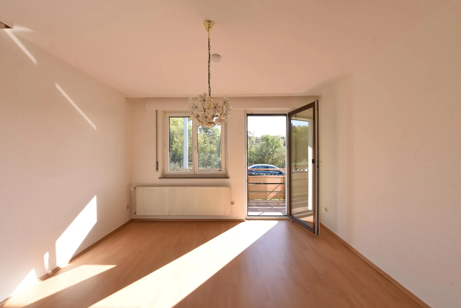 Der Grundriss ist sehr gut: alle Räume sind direkt vom Flur begehbar. Das Badezimmer verfügt über ein Fenster. Der ca. 5,5 m² große und überdachte Süd-Balkon mit Blick ins Grüne ist über das Wohnzimmer begehbar.