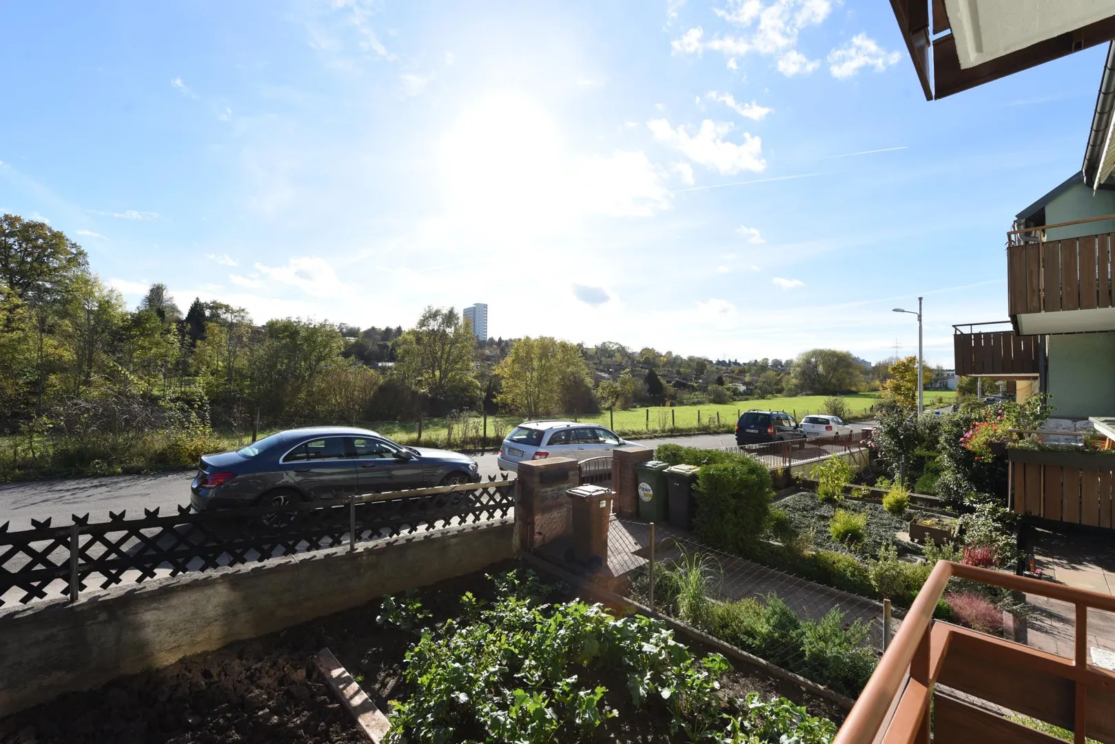 Von der Wohnung gibt es einen Blick ins Grüne. Gegenüber befinden sich Wiesen, Schrebengärten, der Feuerbach und der Waldrand.