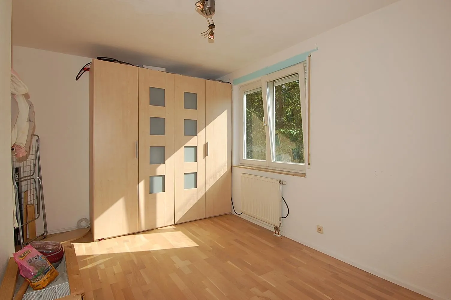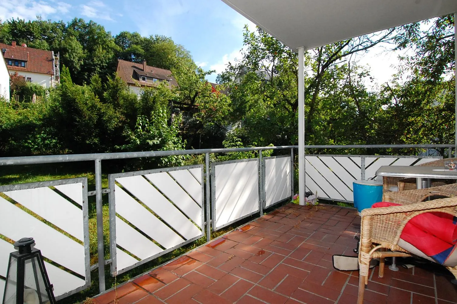 Der Grundriss ist gut. Jeder Raum ist vom Flur begehbar. Die Wohnung verfügt über einen überdachten, ca. 8,5 m² großen Ost-Süd Balkon mit Blick ins Grüne. Der Balkon ist vom Wohnzimmer begehbar.