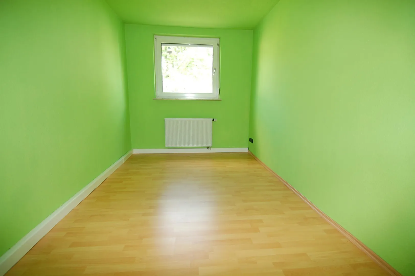 Die Zimmer und der Flur sind mit Laminatböden ausgelegt.