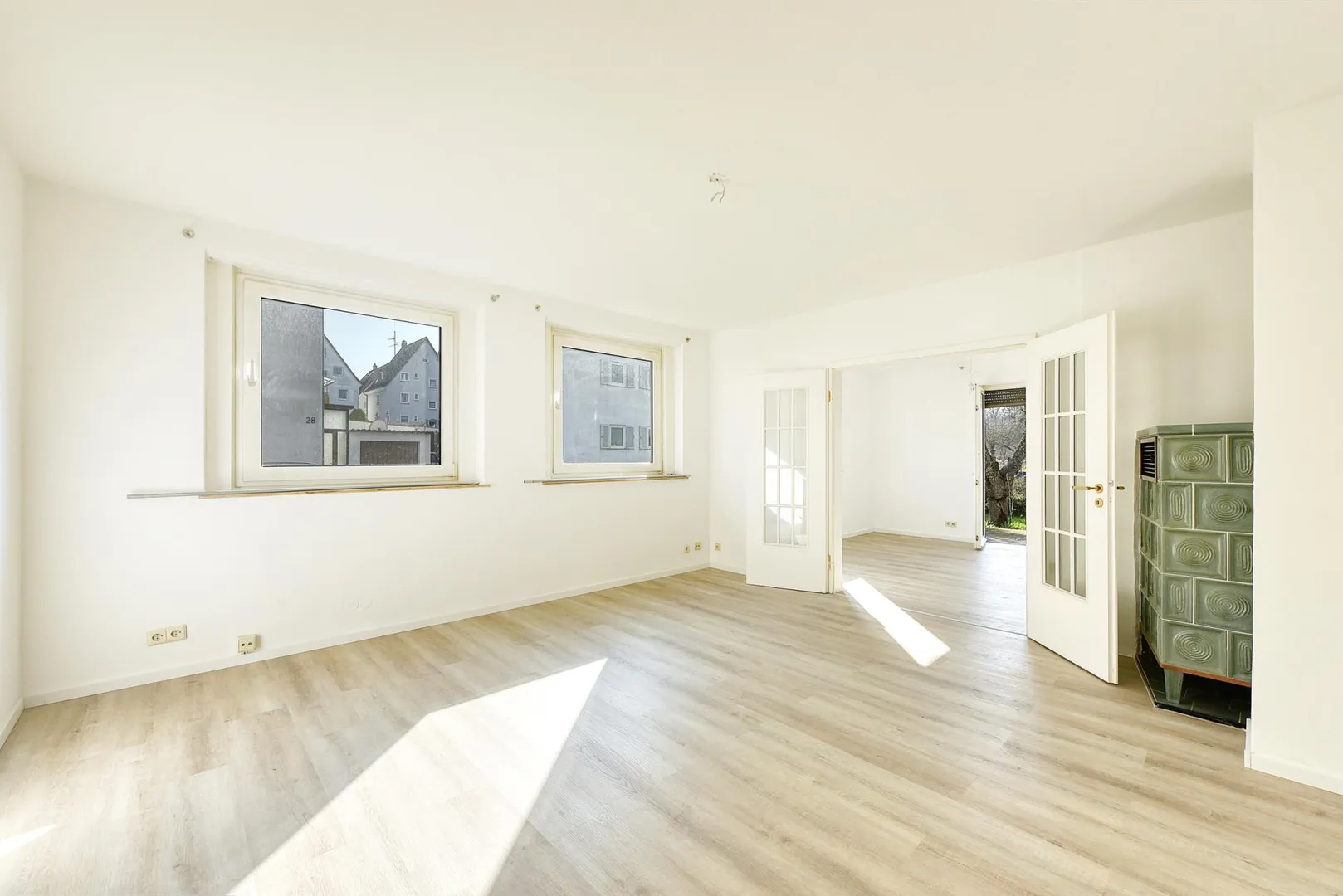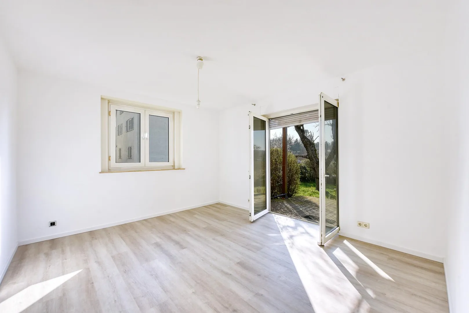 Diese helle und sonnige 4-Zimmer-Erdgeschoss-Etagen-Wohnung mit Terrasse und Garten befindet sich im 3-Familienhaus.