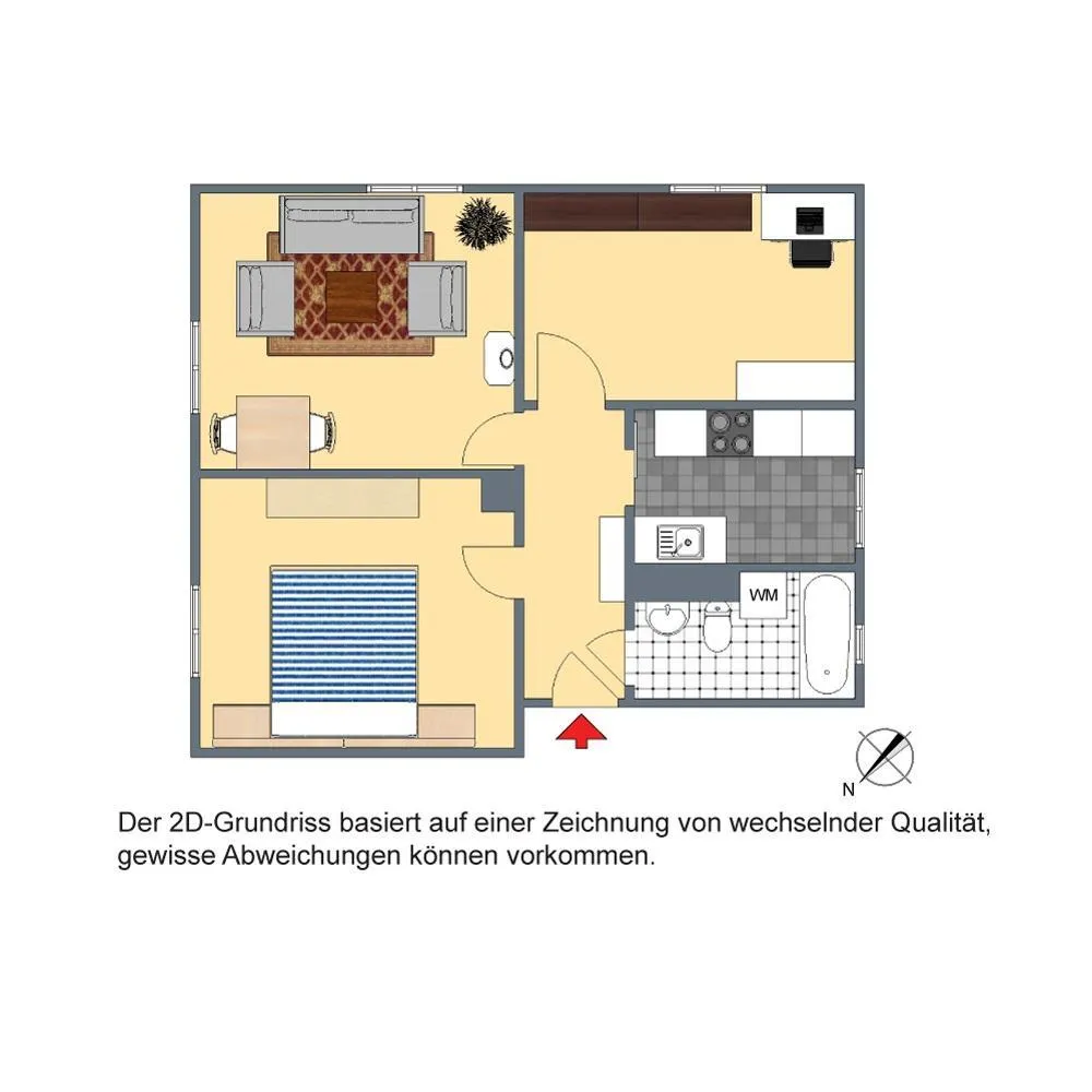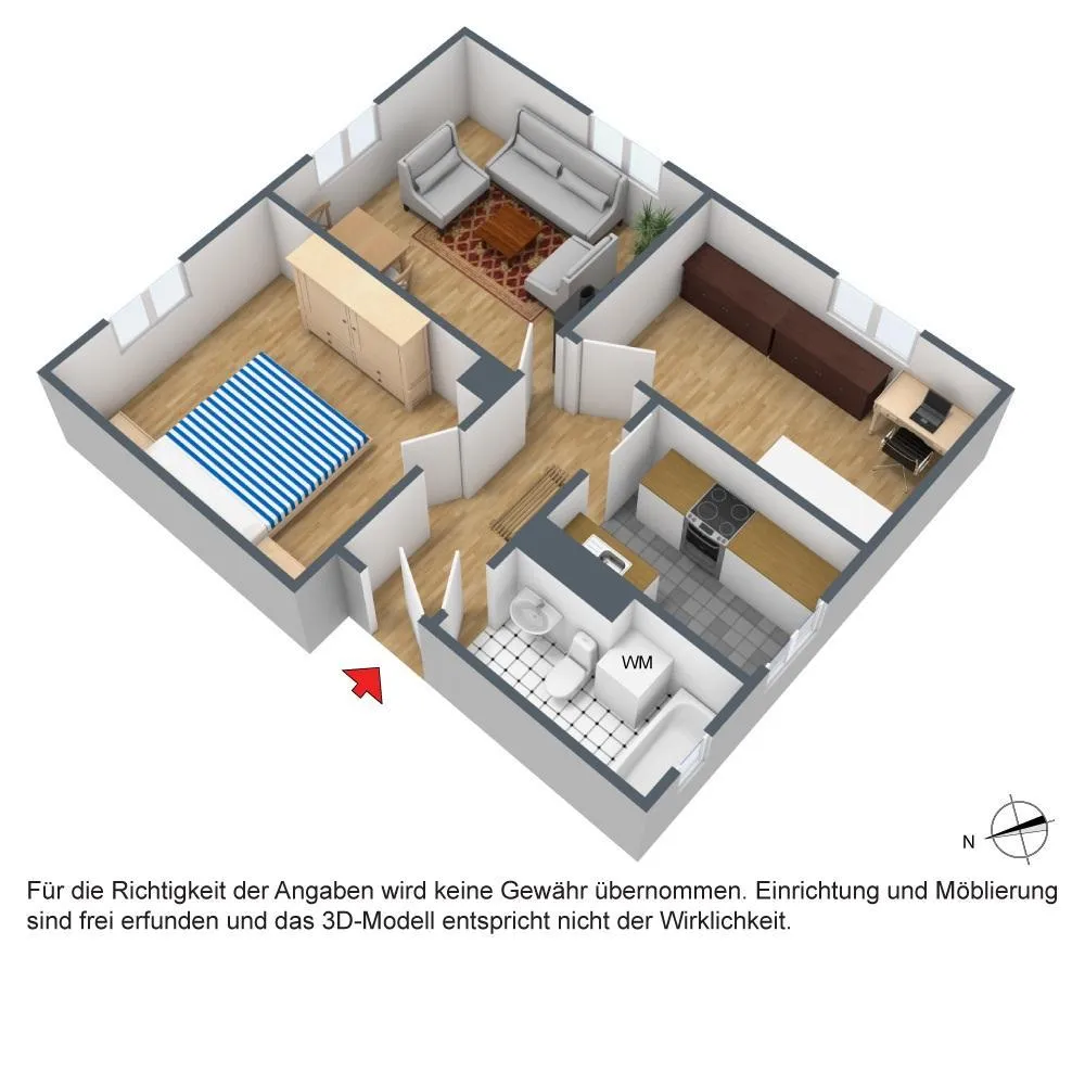 Bitte beachten Sie, dass die Wohnung auf den Bildern größer wirkt als sie eigentlich ist. Die Bilder sollen Ihnen zur Orientierung dienen. Grundrisse und Flächenberechnung liegen dem Exposé anbei.